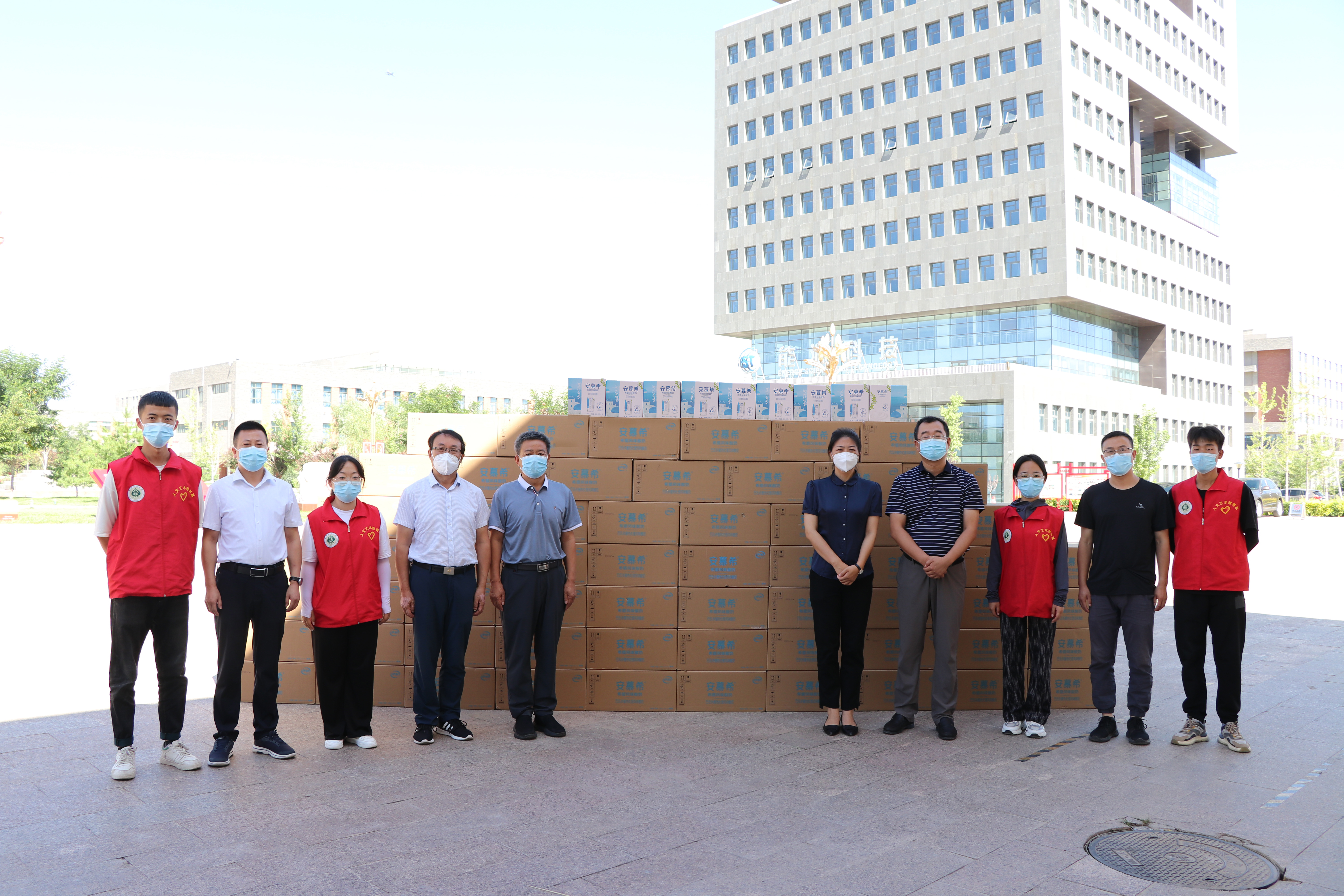 723,在武威市委市政府的關心下,在武威工業(yè)園區(qū)管委會的調配支持下,由伊利乳業(yè)捐贈的590箱共計7080安慕希酸奶送到了武威職業(yè)學院,在疫情防控的特殊時期,讓學校疫情防控學生志愿者、因參加國賽和實習留校的同學們感受到來自政府和社會的關愛。