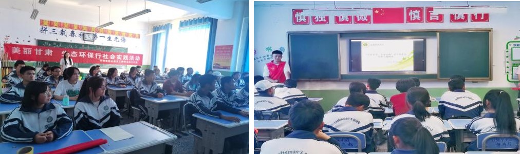 團(tuán)隊(duì)成員在天祝職業(yè)中專教務(wù)處主任張健瑞教師的指引來到21級(jí)3班,志愿者通過播放PPT向同學(xué)們宣講了生態(tài)環(huán)保的重要性以及國(guó)家對(duì)于生態(tài)環(huán)保的做出工作部署及法律法規(guī),并且向同學(xué)們進(jìn)行提問了生態(tài)環(huán)保知識(shí)、發(fā)放了調(diào)查問卷。