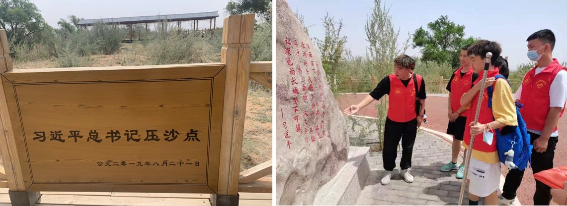 在兩山實踐基地負責人的指引下,我們參觀了習近平總書記曾經(jīng)到達過八步沙參與壓沙的目的地,認真學習了習近平總書記在八步沙的講話精神,深刻領悟到了習近平總書記號召大家要弘揚八步沙“六老漢”困難面前不低頭,敢把沙漠變綠洲的當代愚公精神,在今后,我們將把這種精融入到實踐當中,不負青春,不負韶華積極投身于祖國建設中。