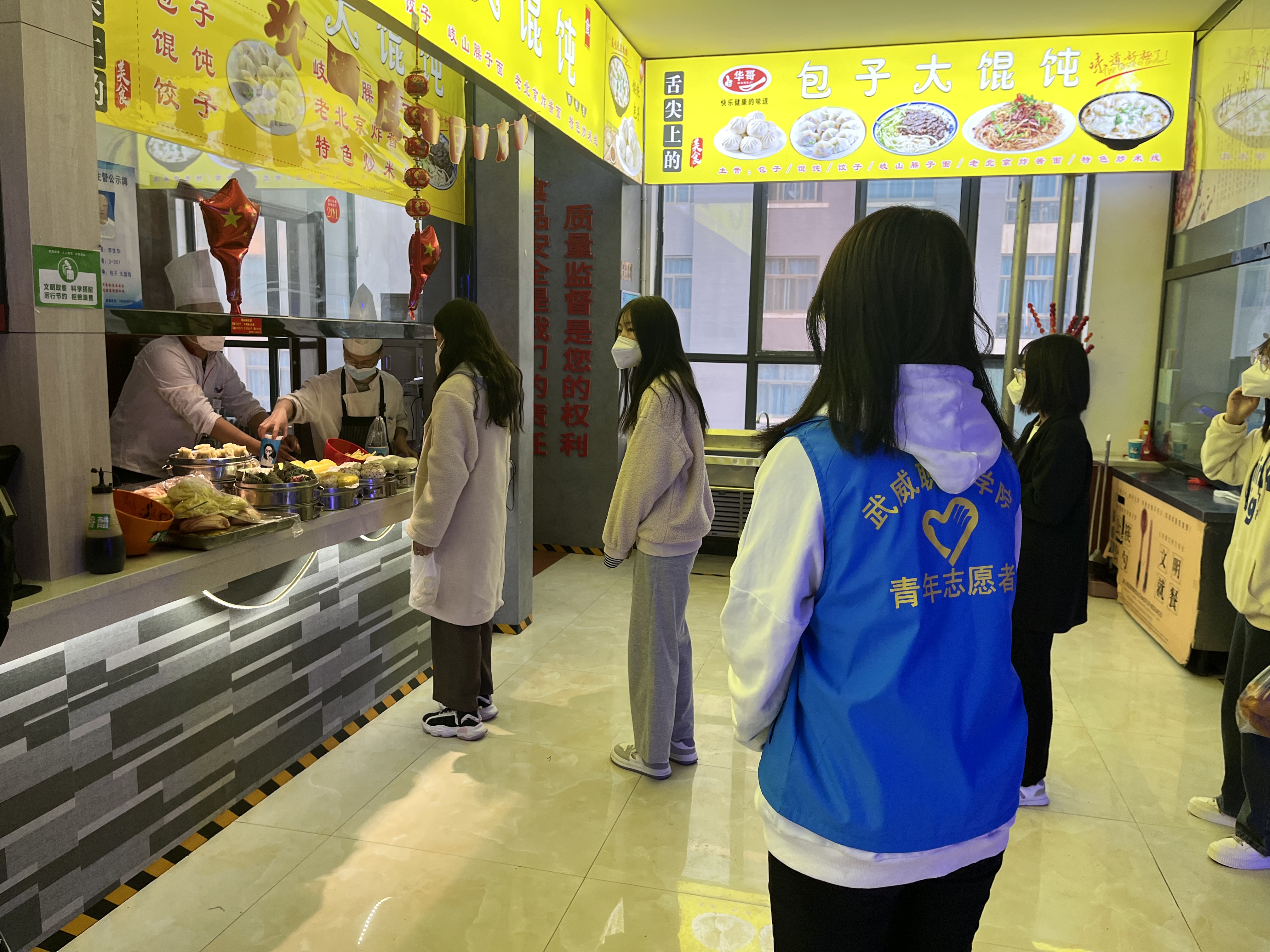 “您好,請測量體溫、掃場所碼。”“請佩戴好口罩,有序排隊……”校學(xué)生會的陶玲在學(xué)校食堂門口值班時不停地提醒著進出打飯的同學(xué)們,這也是她參加校園疫情防控以來每天講得最多的話。自10月13日涼州區(qū)實施臨時管控以來,學(xué)校各學(xué)生組織聞令而動,身穿“藍馬甲”積極投身校園疫情防控一線,用奉獻溫暖了這個秋天。