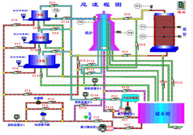 高級過程控制系統(tǒng)主要特點是被調(diào)參數(shù)囊括了流量、壓力、液位、溫度四大熱工參數(shù);執(zhí)行器中既有電動調(diào)節(jié)閥儀表類執(zhí)行機構(gòu),又有變頻器等電力拖動類執(zhí)行器。系統(tǒng)除了能改變調(diào)節(jié)器的設(shè)定值作階躍擾動外,還可在對象中通過電磁閥和手操作閥制造各種擾動。一個被調(diào)參數(shù)可用不同的動力源、不同的執(zhí)行器和不同的工藝線路下可演變成多種調(diào)節(jié)回路,以利于討論、比較各種調(diào)節(jié)方案的優(yōu)劣,從而進行多變量控制系統(tǒng)及特定的高級過程控制系統(tǒng)實驗。
