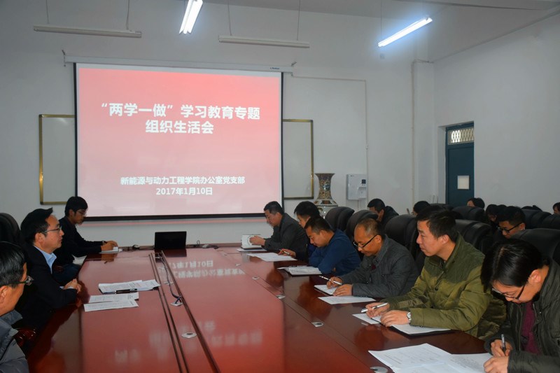 2017年1月10日下午,新能源與動力工程學院辦公室黨支部在明德樓會議室召開“兩學一做”專題組織生活會及民主評議黨員會。會議由支部書記任陶主持,全體教職工參加會議。