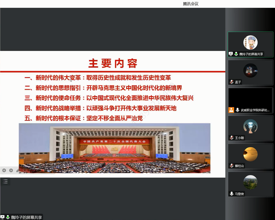 12月23日,按照學(xué)校黨委工作部署,教學(xué)管理第二黨支部組織開展黨的二十大精神宣講宣傳活動(dòng),會(huì)議由黨支部書記董鵬主持,邀請(qǐng)了學(xué)校黨的二十大精神宣講團(tuán)成員魏玲,支部全體黨員和入黨積極分子通過網(wǎng)絡(luò)視頻參加學(xué)習(xí),會(huì)議精神宣傳至支部全體人員。