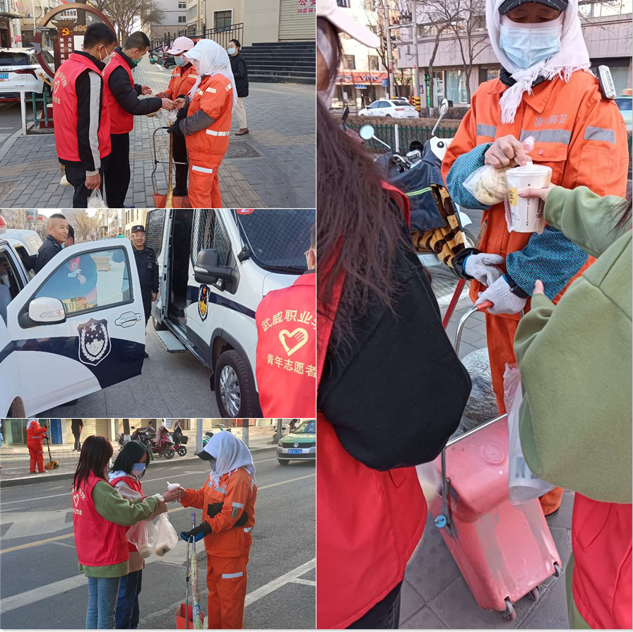 第一組志愿者為分布在文化廣場周邊工作崗位上的民警和環(huán)衛(wèi)工人送去一份份免費愛心早餐,誠摯感謝他們起早貪黑不辭辛苦為城市做出的貢獻。
