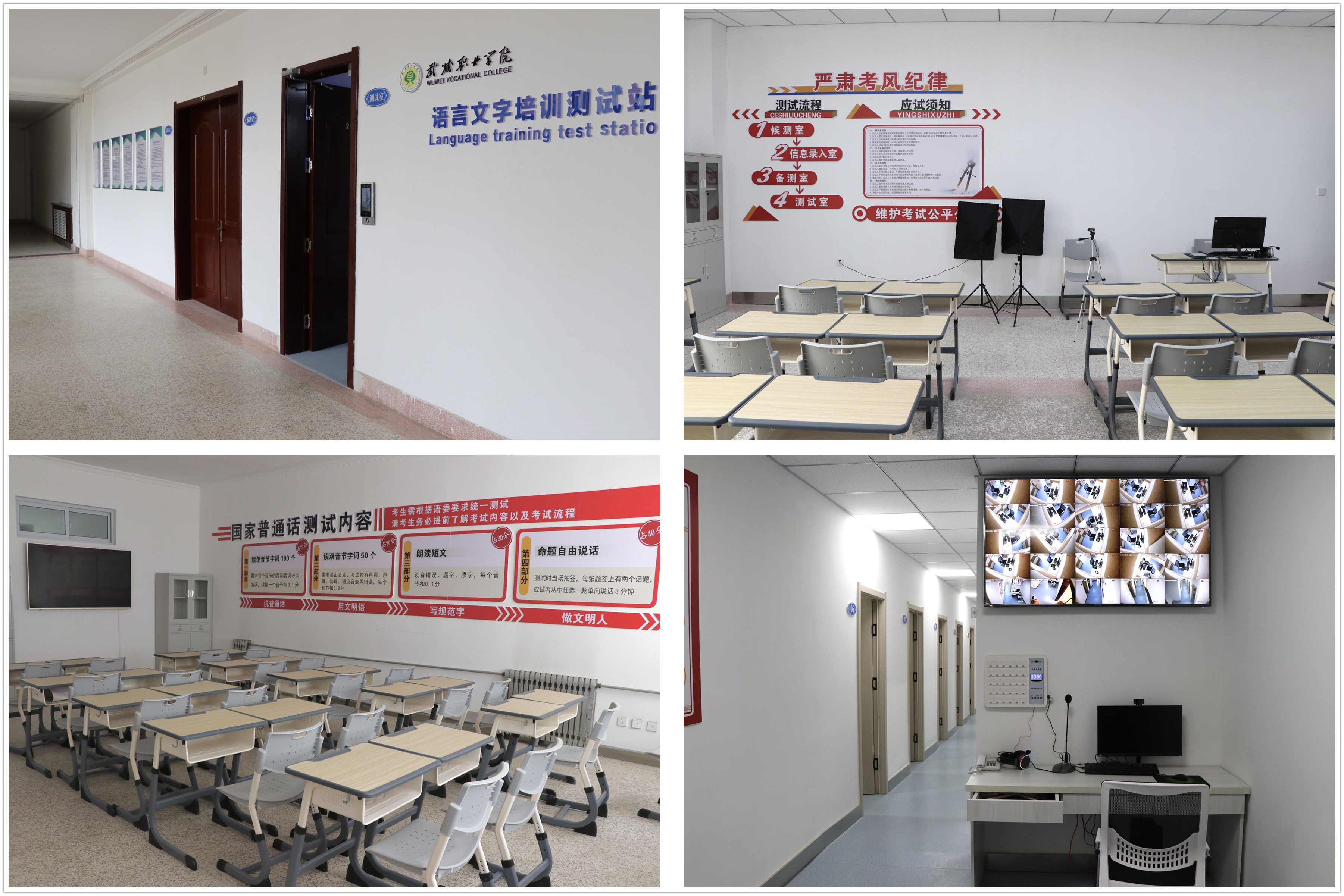 2003年建校起,學校承接武威市普通話培訓測試任務,2008年,我校語言文字培訓測試站獲批建設。學校對普通話培訓測試工作高度重視,努力為廣大師生搭建普通話水平培訓測試優(yōu)質服務平臺,2019年將“普通話標準化測試機房建設項目”列入學?!半p高”計劃建設項目,投入61萬余元,于2022年10月建成。