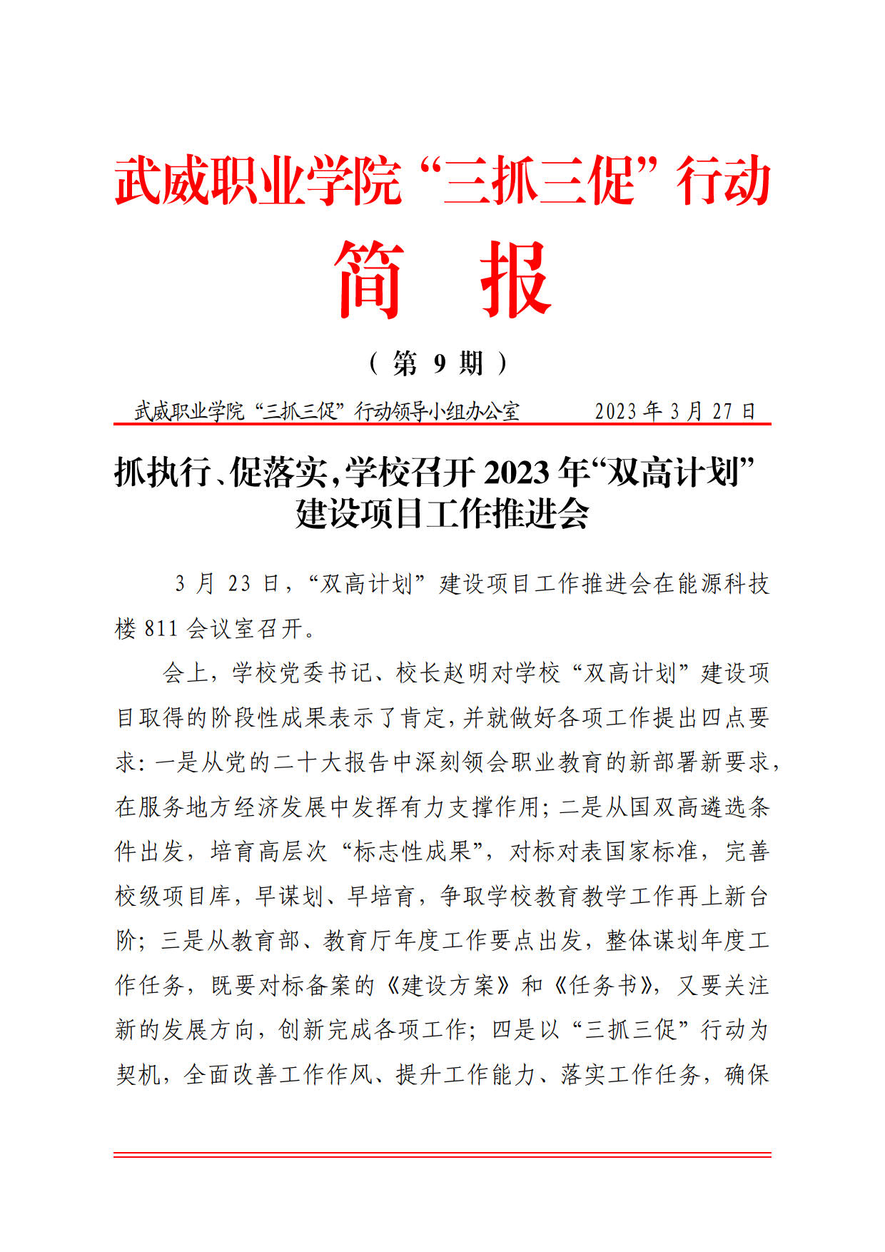 簡報第9期:抓執(zhí)行、促落實,學(xué)校召開2023年“雙高計劃”建設(shè)項目工作推進(jìn)會