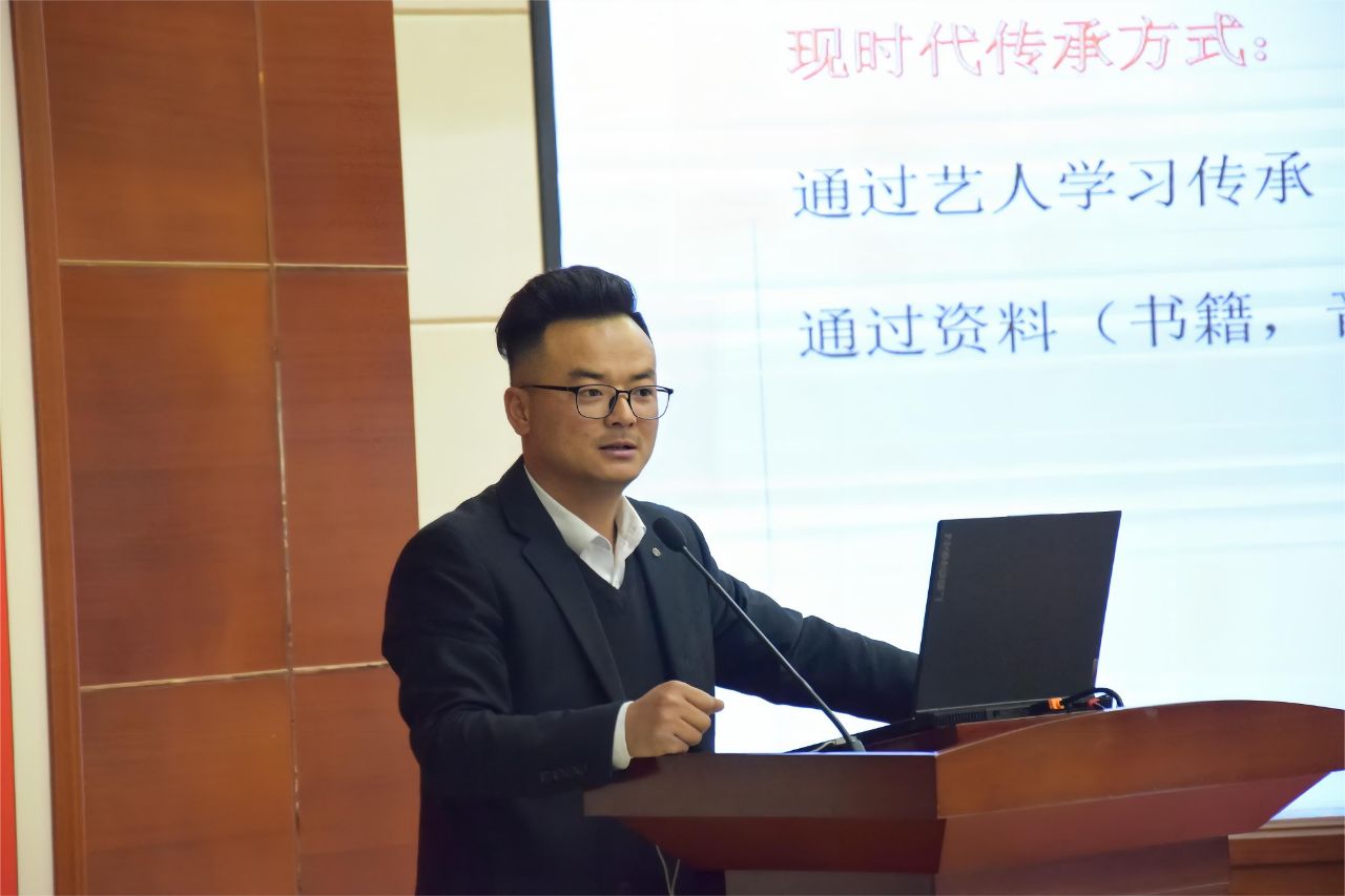 賈旭峰是近年來活躍在武威非遺舞臺(tái)上的一顆新星,他向同學(xué)們介紹了涼州賢孝的腔調(diào)、唱法及唱詞涵義。賈旭峰飽含深情地介紹了自己做為一名新時(shí)代的青年,去做涼州賢孝傳唱這樣古老的工作,不被他人理解、深受嘲諷的情況下堅(jiān)持信念、不斷創(chuàng)新的心路歷程,如今他已是擁有近十萬粉絲的網(wǎng)絡(luò)達(dá)人,為涼州賢孝的傳播做出了貢獻(xiàn)。同時(shí),他也呼吁同學(xué)們擔(dān)當(dāng)起振興傳統(tǒng)文化的重任,讓非遺傳承流光溢彩。講座最后,同學(xué)們還饒有興致地向賈旭峰學(xué)習(xí)演唱了賢孝片斷。