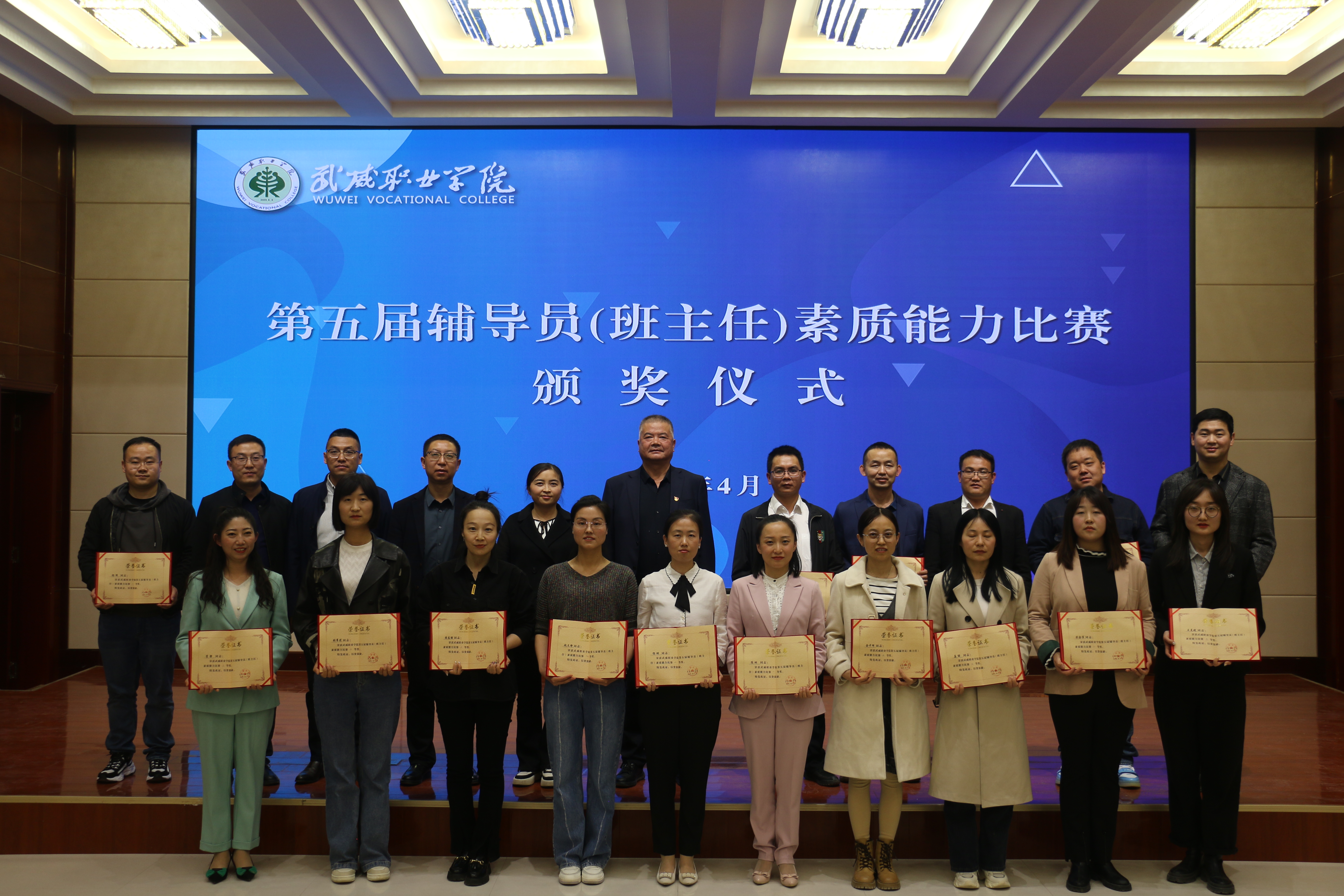 4月18日至20日,武威職業(yè)學院第五屆輔導員(班主任)素質(zhì)能力比賽在菁英廳成功舉辦。決賽現(xiàn)場,學院黨委委員、副校長王守云出席活動并為獲獎選手頒獎。