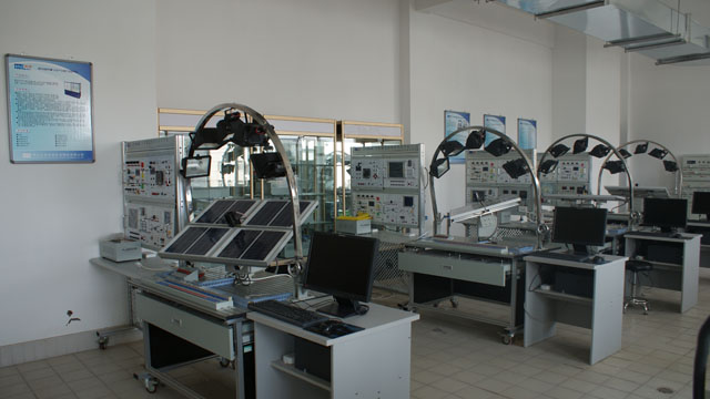 光伏光熱實(shí)訓(xùn)室建立于2013年4月初,主要面向光伏發(fā)電及應(yīng)用技術(shù)、太陽(yáng)能光熱技術(shù)專業(yè),是能源工程系的專業(yè)實(shí)訓(xùn)室之一。室內(nèi)配有光伏產(chǎn)業(yè)鏈陳列柜、太陽(yáng)能輻射觀測(cè)系統(tǒng)、太陽(yáng)能氣象觀測(cè)系統(tǒng)各1套,太陽(yáng)能熱水器實(shí)訓(xùn)裝置2套,太陽(yáng)能光伏發(fā)電系統(tǒng)應(yīng)用平臺(tái)4套,太陽(yáng)能光伏發(fā)電系統(tǒng)實(shí)訓(xùn)裝置8套。該實(shí)訓(xùn)室主要服務(wù)于我系《光伏發(fā)電技術(shù)分析與應(yīng)用》、《太陽(yáng)能資源利用與開發(fā)》、《光伏發(fā)電系統(tǒng)集成與施工》等專業(yè)核心課程。