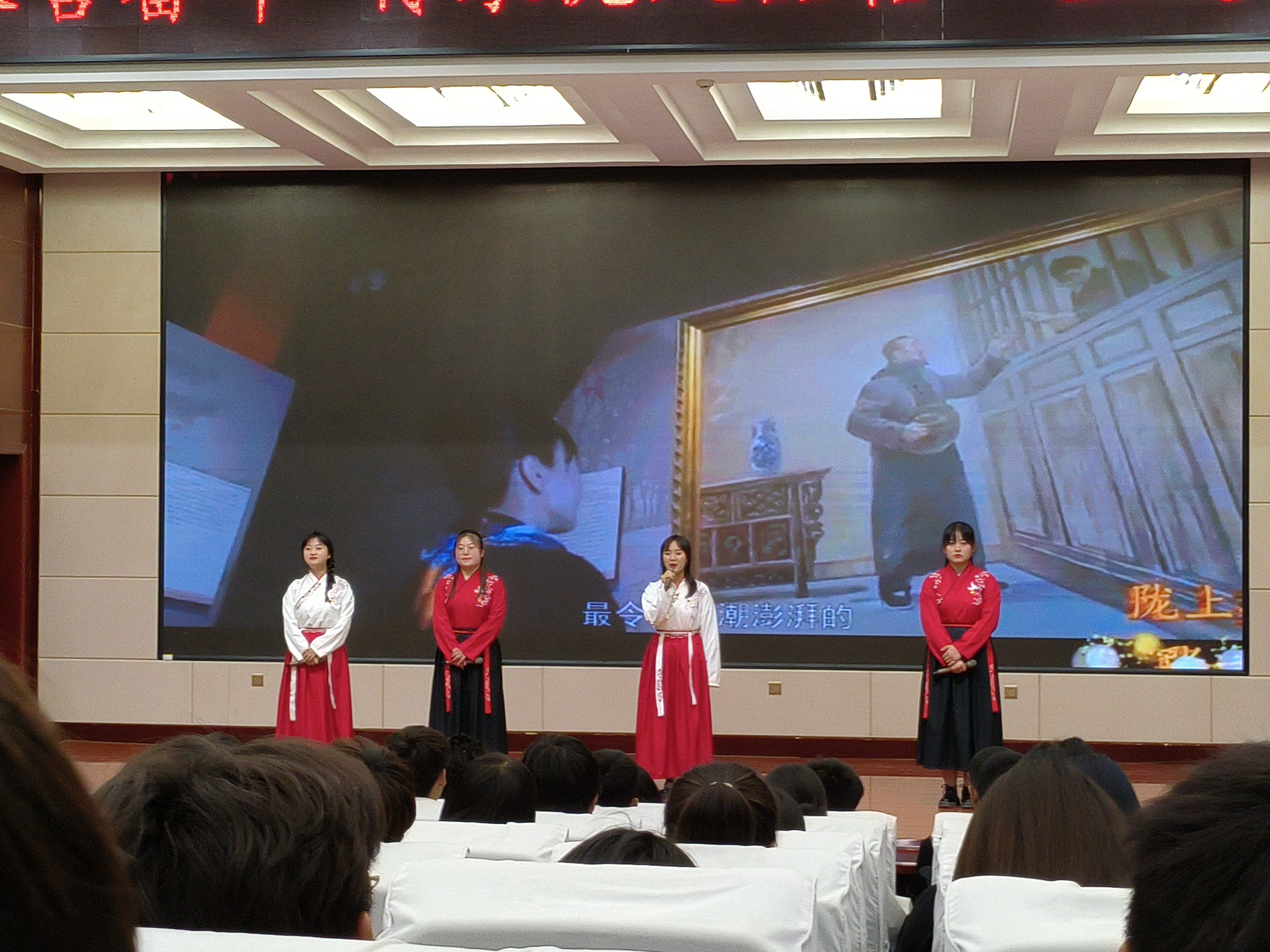? ? ? ?比賽開始前,主持人介紹了出席此次比賽的各位評委老師,隨后宣讀了比賽評分規(guī)則,比賽在一陣掌聲中正式開始。經(jīng)過前期的初賽選拔,共有11組選手晉級決賽。賽場上,選手們緊扣主題,以飽滿的熱情、質(zhì)樸的語言、生動的表達(dá)、真摯的情感展現(xiàn)了他們對隴人精神的學(xué)習(xí)和認(rèn)識。