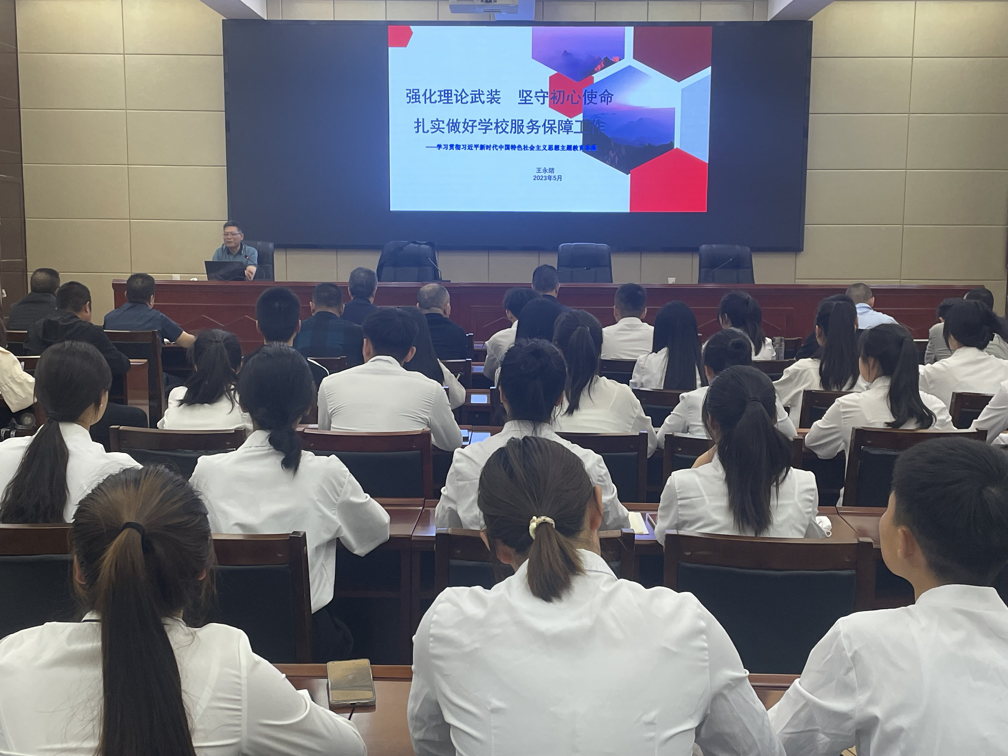 按照學校黨委關于學習貫徹習近平新時代中國特色社會主義思想主題教育的部署安排,5月31日,學校黨委委員、副校長王永緒講授了題為《強化理論武裝? 堅守初心使命》的專題黨課,后勤管理處、基建處、國有資產管理處、護理學院和信息技術學院全體黨員、預備黨員、發(fā)展對象等80余人聆聽了黨課。