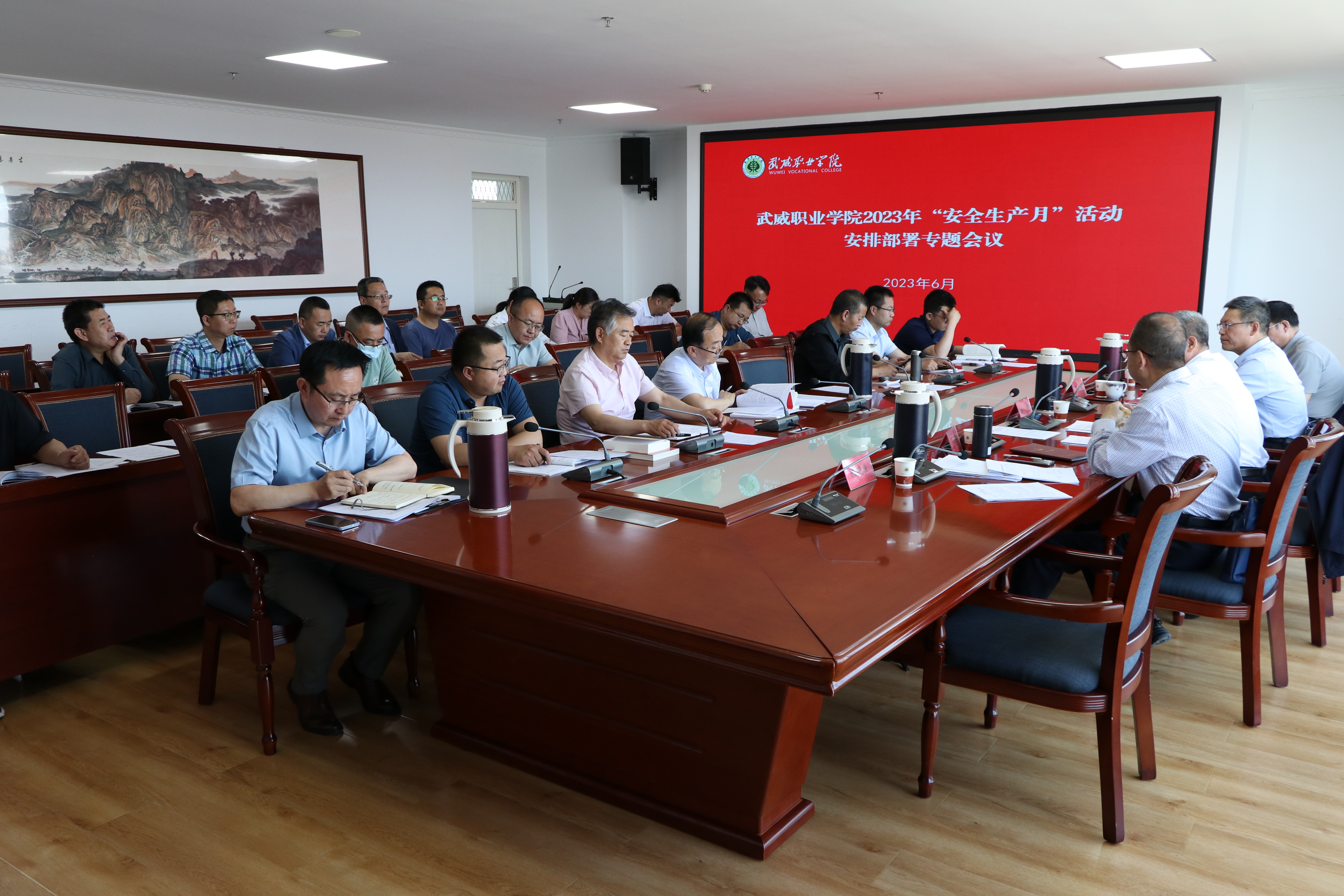 會議傳達學(xué)習(xí)了省教育廳《關(guān)于開展2023年教育系統(tǒng)“安全生產(chǎn)月”活動的通知》精神,并審定通過了《武威職業(yè)學(xué)院2023年“安全生產(chǎn)月”活動實施方案》。