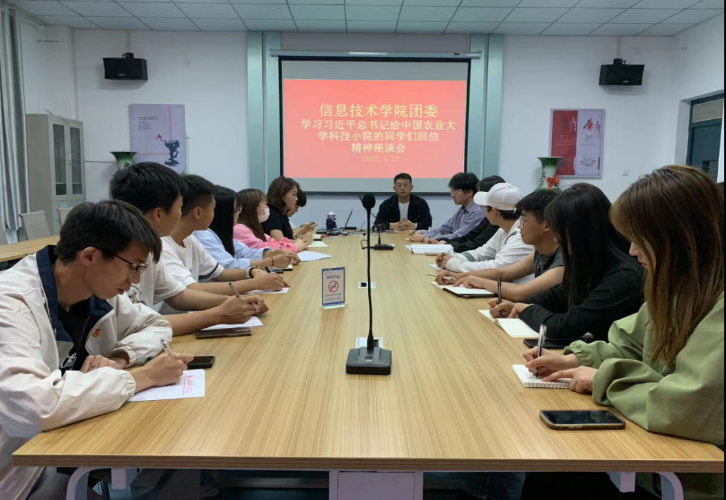 2023年5月29日,信息技術(shù)學(xué)院團(tuán)支部書記在會(huì)議室召開學(xué)習(xí):習(xí)近平總書記給中國(guó)農(nóng)業(yè)大學(xué)科技小院學(xué)生的回信。