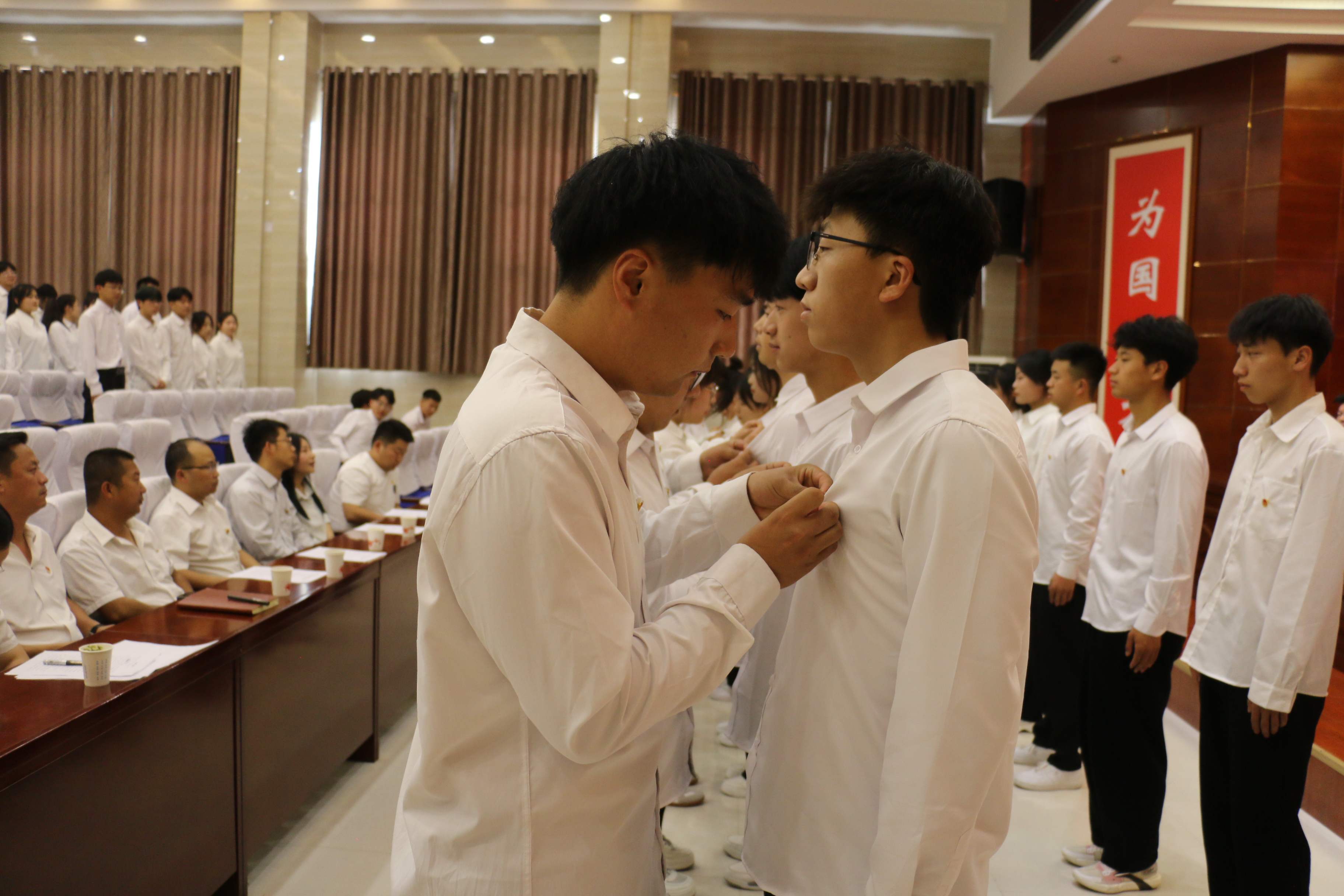 入團儀式上,校團委相關(guān)負責人宣讀了128名新團員名單,并向新團員闡釋了團徽的組成及象征意義。老團員代表為新團員代表佩戴了團徽,全體團員面對鮮艷的團旗,進行了莊嚴的宣誓。