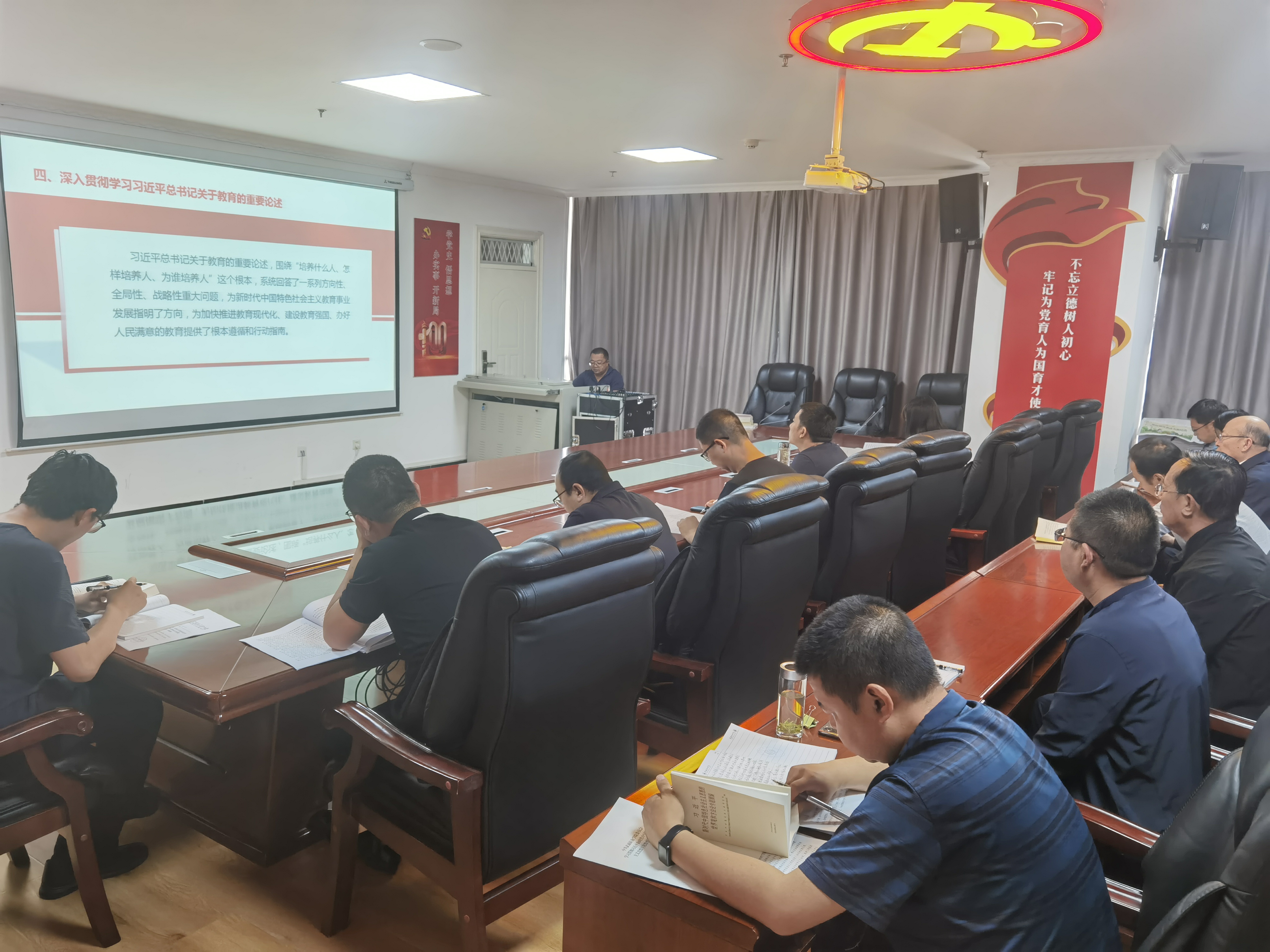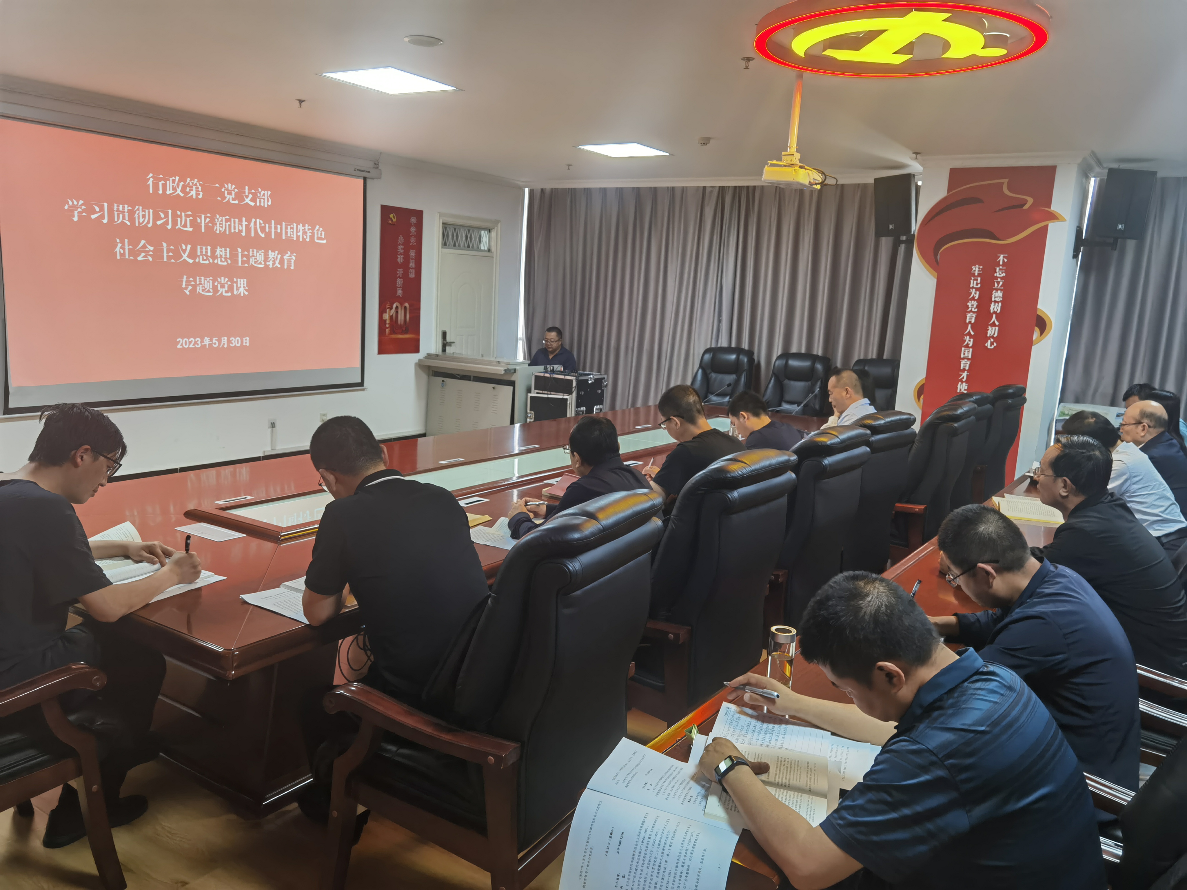 5月30日下午,行政第二黨支部書記魏全民在810會議室以《學(xué)習(xí)新思想 奮進(jìn)新征程 建功新時(shí)代》為題,并結(jié)合個(gè)人學(xué)思踐悟和教育教學(xué)工作實(shí)際,講授學(xué)習(xí)貫徹習(xí)近平新時(shí)代中國特色社會主義思想主題教育專題黨課,行政第二黨支部全體黨員參加。