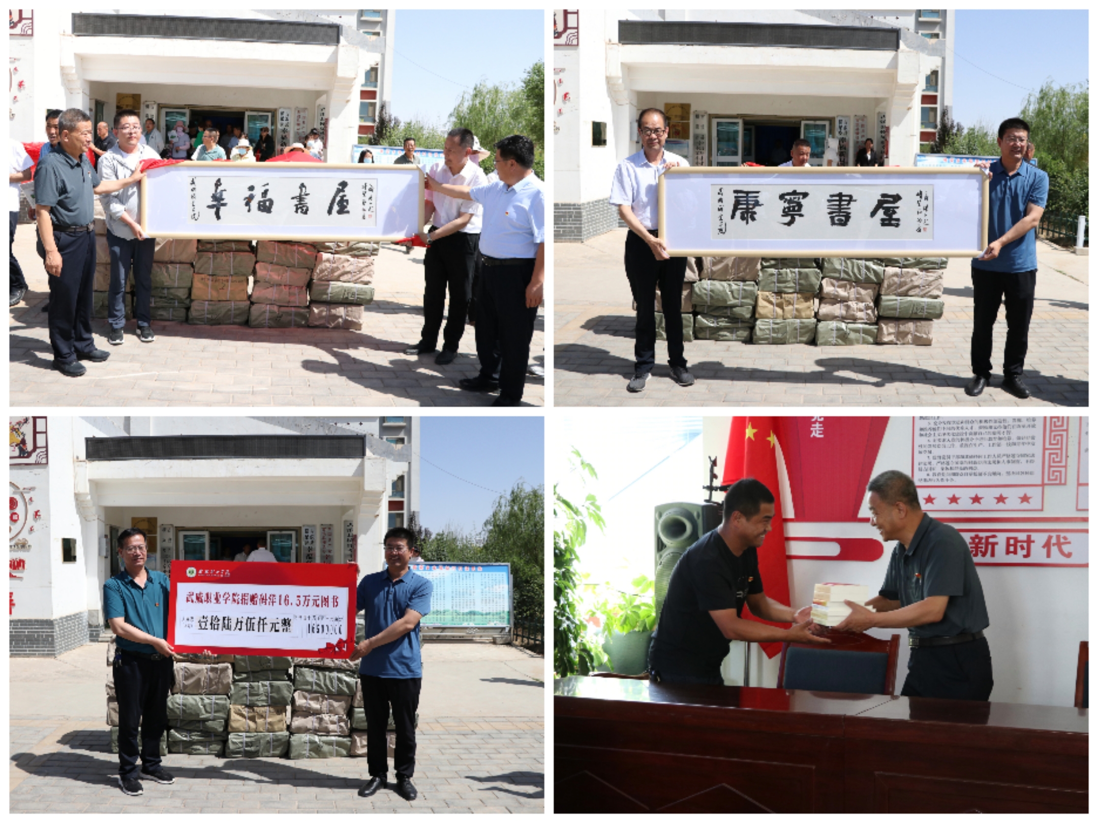 趙明、何文國(guó)就文化振興項(xiàng)目進(jìn)行了深入交流,簽訂了《定向幫扶捐贈(zèng)協(xié)議》《武威職業(yè)學(xué)院在橫梁鄉(xiāng)幸福新村、康寧新村捐建開放式農(nóng)家書屋的協(xié)議書》,雙方代表為幸福書屋、康寧書屋揭牌,學(xué)校為橫梁鄉(xiāng)捐贈(zèng)文化振興專項(xiàng)資金13萬元和碼洋16.5萬元的圖書。