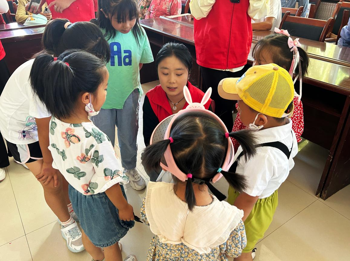 圖為實(shí)踐隊(duì)員與走訪地兒童進(jìn)行普通話趣味游戲