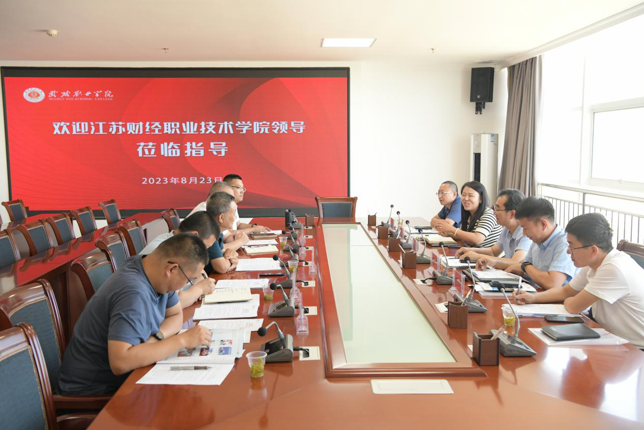8月23日上午,江蘇財經(jīng)職業(yè)技術(shù)學(xué)院原黨委副書記、校長程淮中一行來校就校企協(xié)同育人、產(chǎn)業(yè)學(xué)院建設(shè)進行考察交流。學(xué)校黨委書記、校長趙明,黨委委員、副校長王守云,教務(wù)處、招生就業(yè)處、經(jīng)濟管理學(xué)院相關(guān)負責(zé)人陪同考察并交流座談。