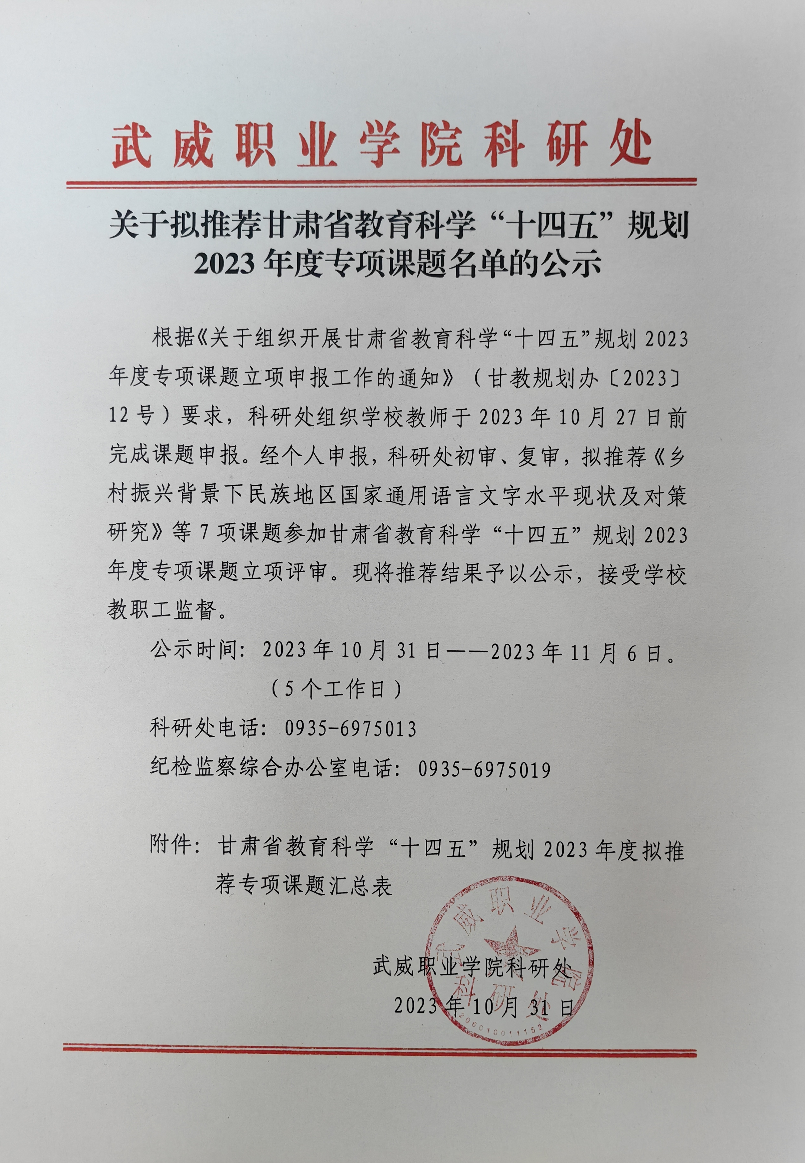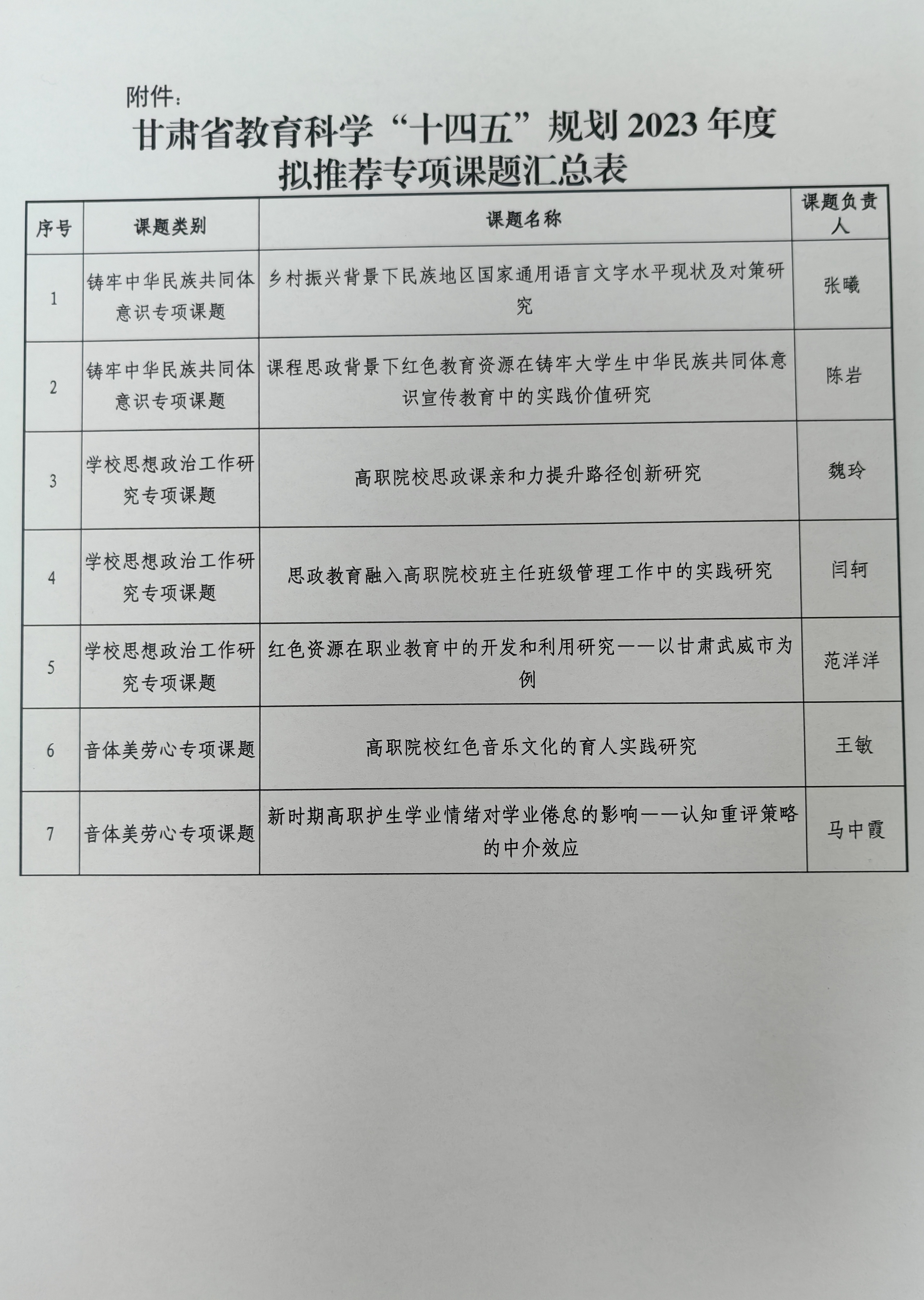 關于擬推薦甘肅省教育科學“十四五”規(guī)劃2023年度專項課題名單的公示