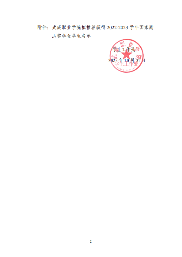 武威職業(yè)學(xué)院關(guān)于2022-2023學(xué)年國家勵志獎學(xué)金…