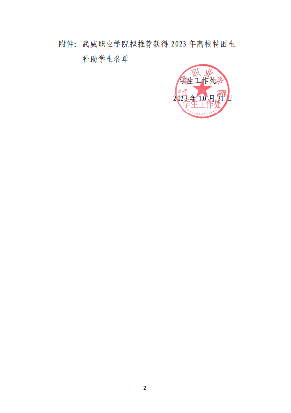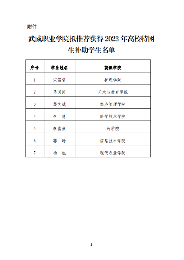 武威職業(yè)學(xué)院關(guān)于2023年高校特困生補(bǔ)助獲得者的…