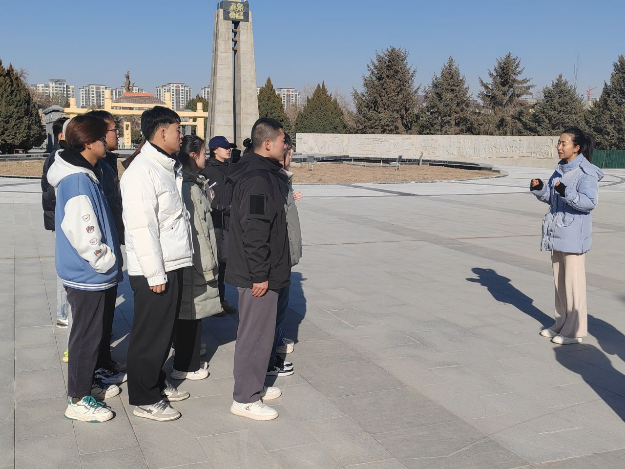 11月24日在4A級景區(qū)雷臺漢墓景區(qū)的馬踏飛燕前,武威職業(yè)學(xué)院2022級旅游管理專業(yè)大專班的學(xué)生正在進(jìn)行景區(qū)模擬講解活動。一名學(xué)生在企業(yè)兼職教師呂龍梅的指導(dǎo)下,認(rèn)真地為大家進(jìn)行講解,這是一次特別的教學(xué)活動——將一堂完整的專業(yè)課程搬到景區(qū)進(jìn)行,通過實踐學(xué)習(xí)深化專業(yè)知識和技能。