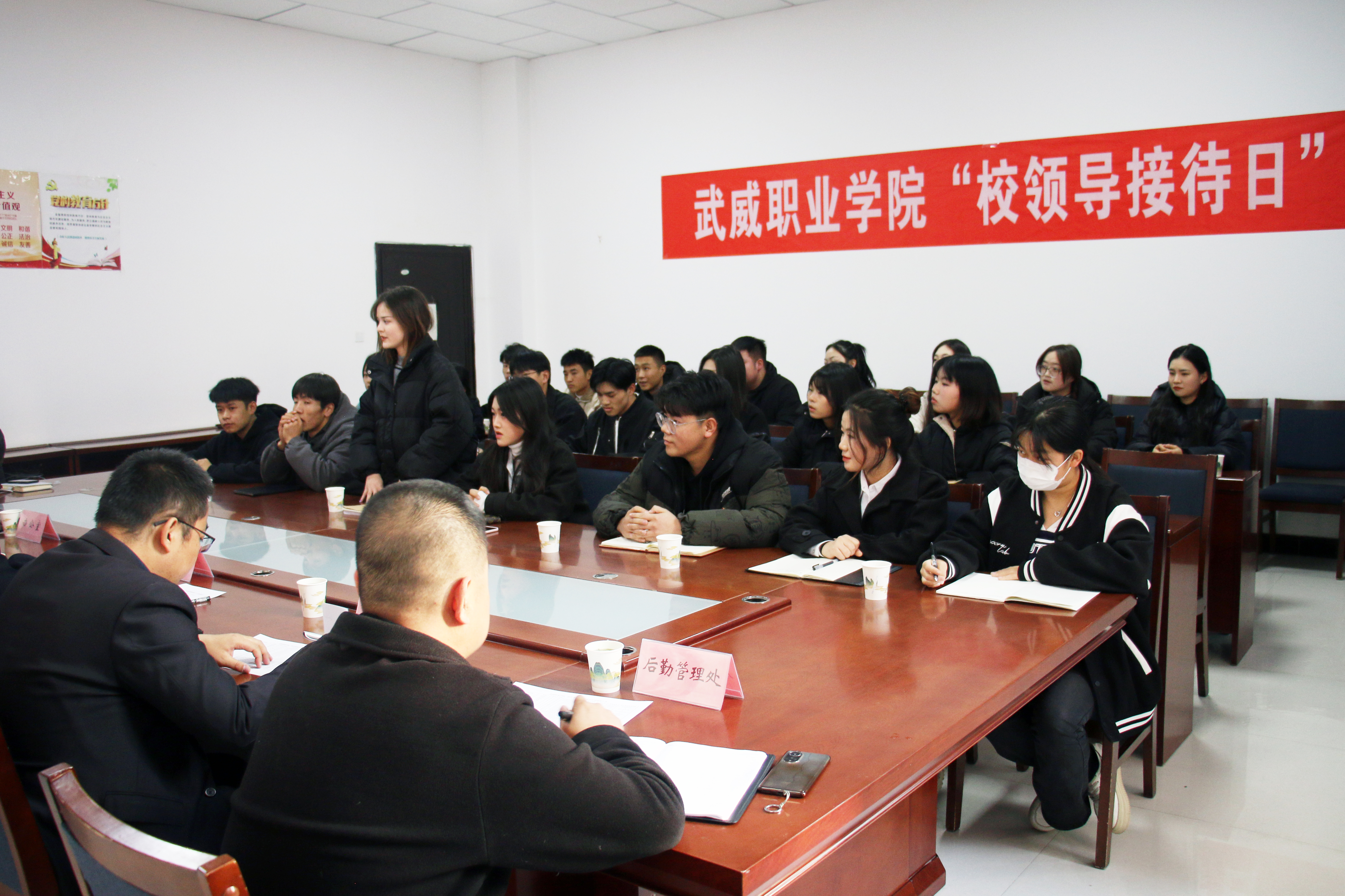 為切實(shí)做好“四下基層”工作,保障學(xué)生權(quán)益,進(jìn)一步營造民主和諧的校園氛圍,提高校園服務(wù)質(zhì)量和管理水平,學(xué)校于11月24日下午在學(xué)生發(fā)展中心103會議室舉辦了2023-2024學(xué)年第一期“校領(lǐng)導(dǎo)接待日”活動。校長、黨委副書記張開禮與來自各二級學(xué)院的22名學(xué)生代表進(jìn)行了親切交流,辦公室、教務(wù)處、學(xué)生工作處、后勤管理處等相關(guān)部門負(fù)責(zé)人參加了活動。