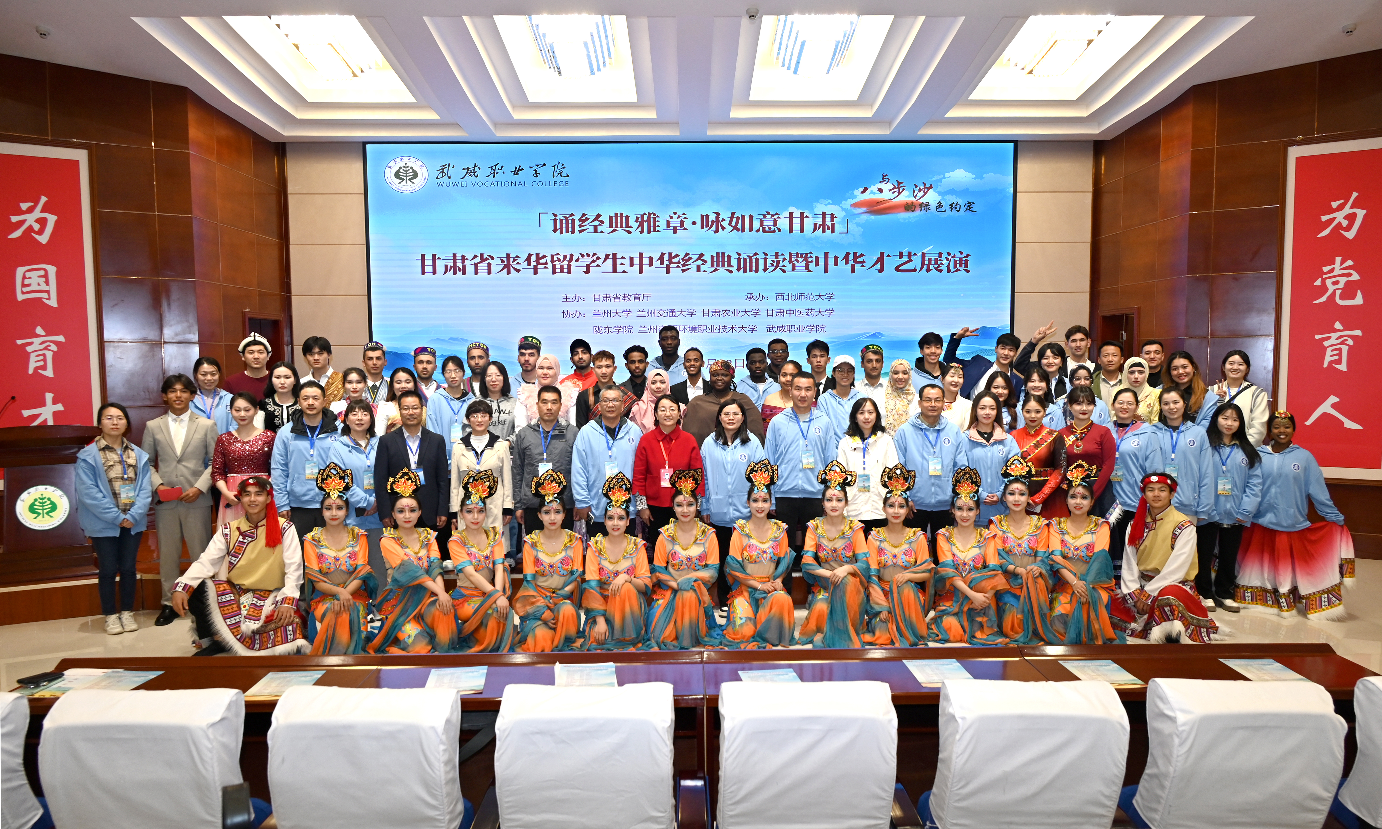 田迎春代表學(xué)校對出席展演活動領(lǐng)導(dǎo)、嘉賓、留學(xué)生表示熱烈歡迎。她說,武威是中國旅游標(biāo)志之都、國家歷史文化名城、中國優(yōu)秀旅游城市,以漢唐文化、五涼文化、西夏文化等為代表的涼州文化,是中華傳統(tǒng)文化的重要組成部分。省教育廳組織開展的“誦經(jīng)典雅章·詠如意甘肅”中華詩文誦讀展演活動在武威職業(yè)學(xué)院舉辦,就是賦予優(yōu)秀傳統(tǒng)文化時代內(nèi)涵、創(chuàng)新優(yōu)秀傳統(tǒng)文化表達形式最好的實踐,希望留學(xué)生深度感知中華優(yōu)秀傳統(tǒng)文化,積極參與、認真體驗,更好了解當(dāng)代中國、美好甘肅、美麗武威,將中國聲音、甘肅故事、武威新貌帶回自己的國家、帶向世界各地。