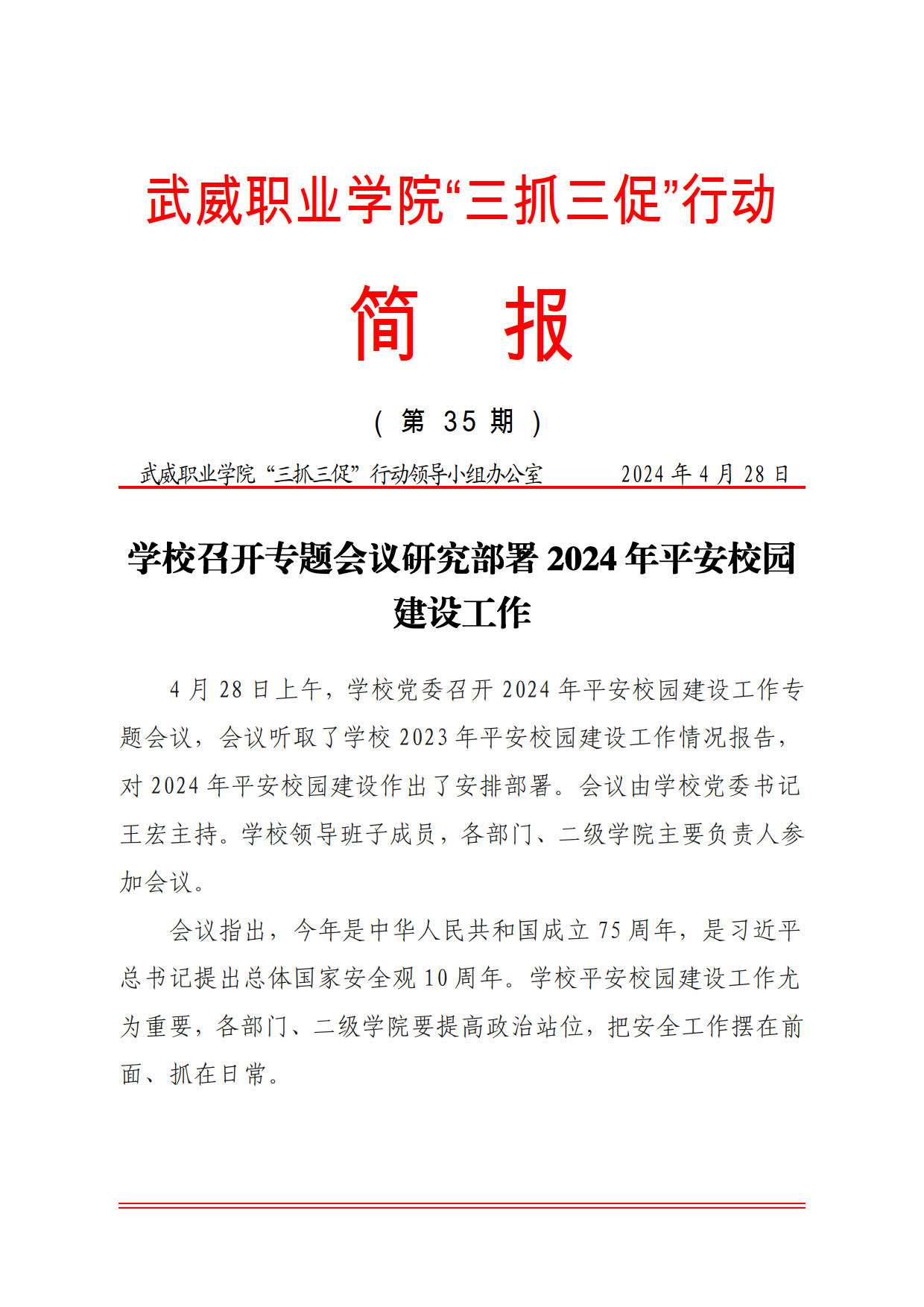 簡報(bào)第35期:學(xué)校召開專題會(huì)議研究部署2024年平安校園建設(shè)工作