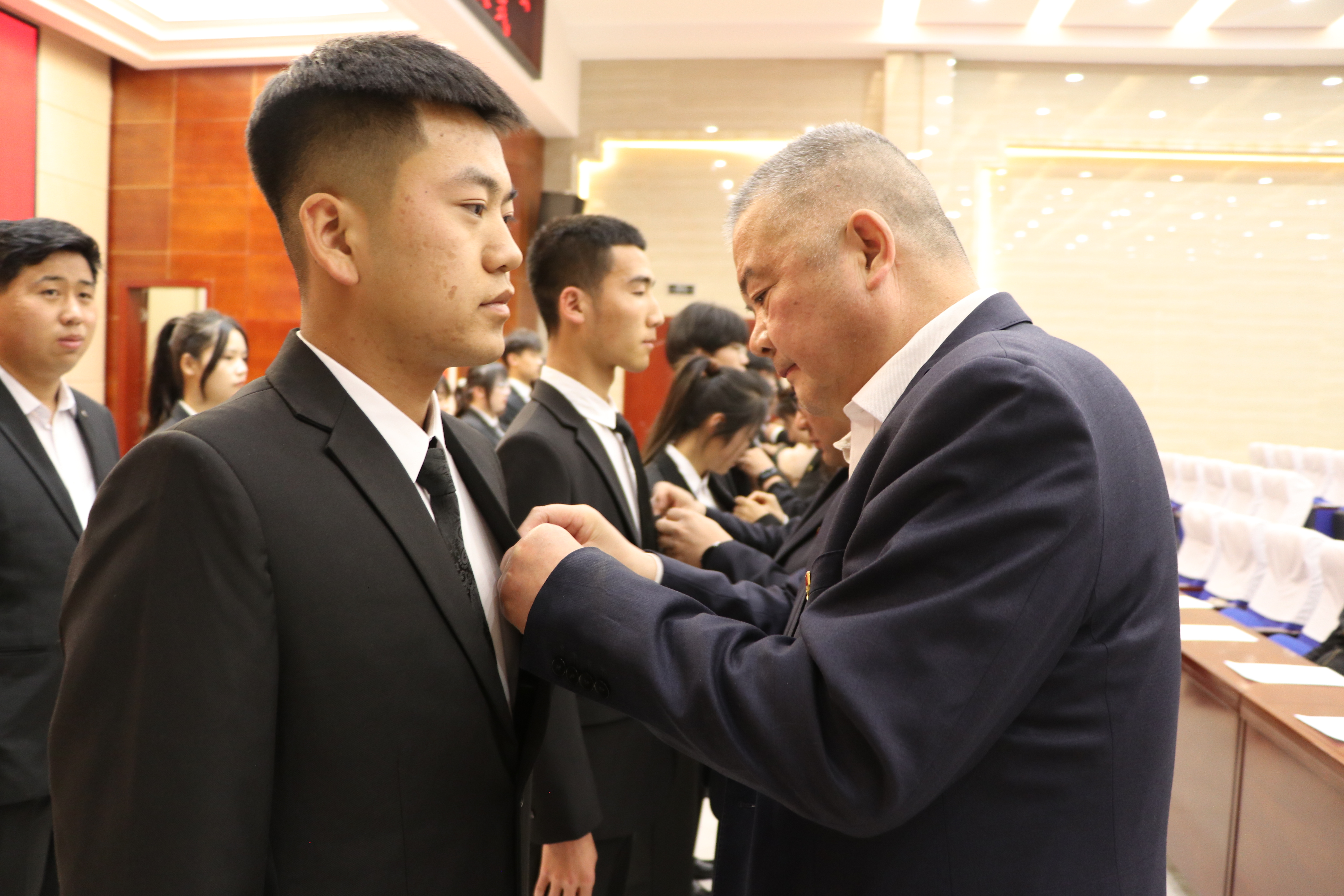 入團(tuán)儀式上,校團(tuán)委副書記劉吉仁宣讀235名新團(tuán)員名單,與會領(lǐng)導(dǎo)、各二級學(xué)院團(tuán)委書記為新團(tuán)員代表佩戴團(tuán)徽舉行頒發(fā)禮,全體新老團(tuán)員面向團(tuán)旗莊嚴(yán)宣誓。
