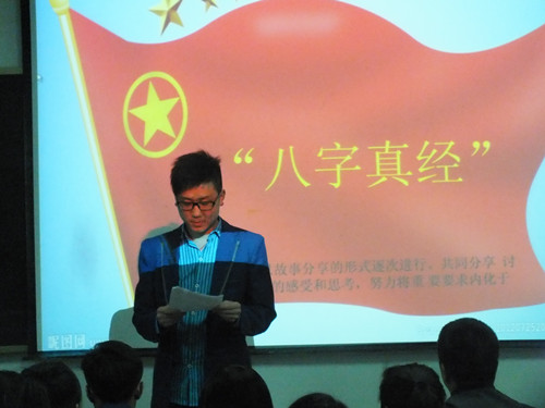 主題團(tuán)會(huì)上,系學(xué)生會(huì)干部和系團(tuán)干部以及各班學(xué)生代分別就習(xí)總書記的“八字真經(jīng)”的精神通過(guò)講故事,說(shuō)道理等形式進(jìn)行了表達(dá),活動(dòng)氣氛熱烈,大家踴躍發(fā)言,從生活、學(xué)習(xí)各個(gè)方面的小事說(shuō)起,就“八字真經(jīng)”的內(nèi)涵進(jìn)行了深入的剖析。