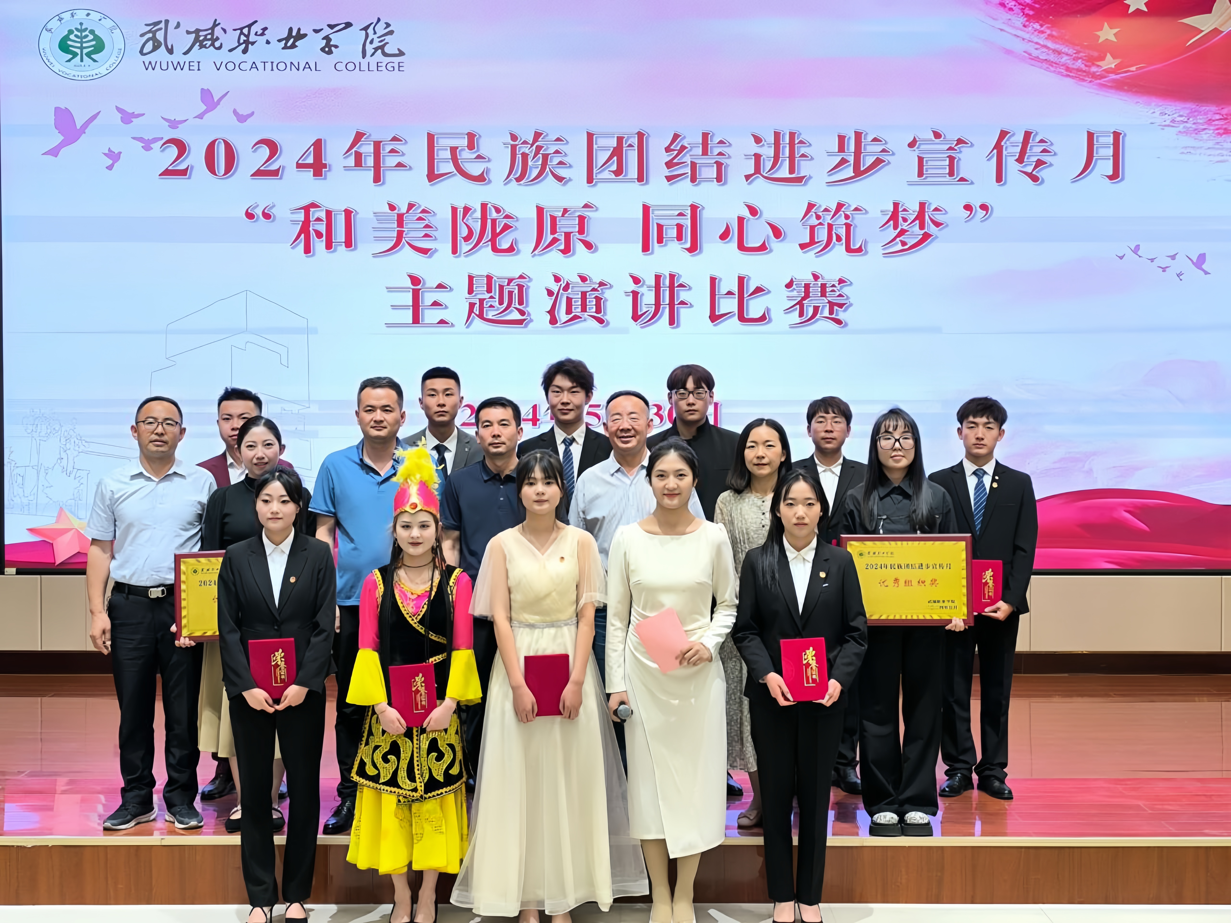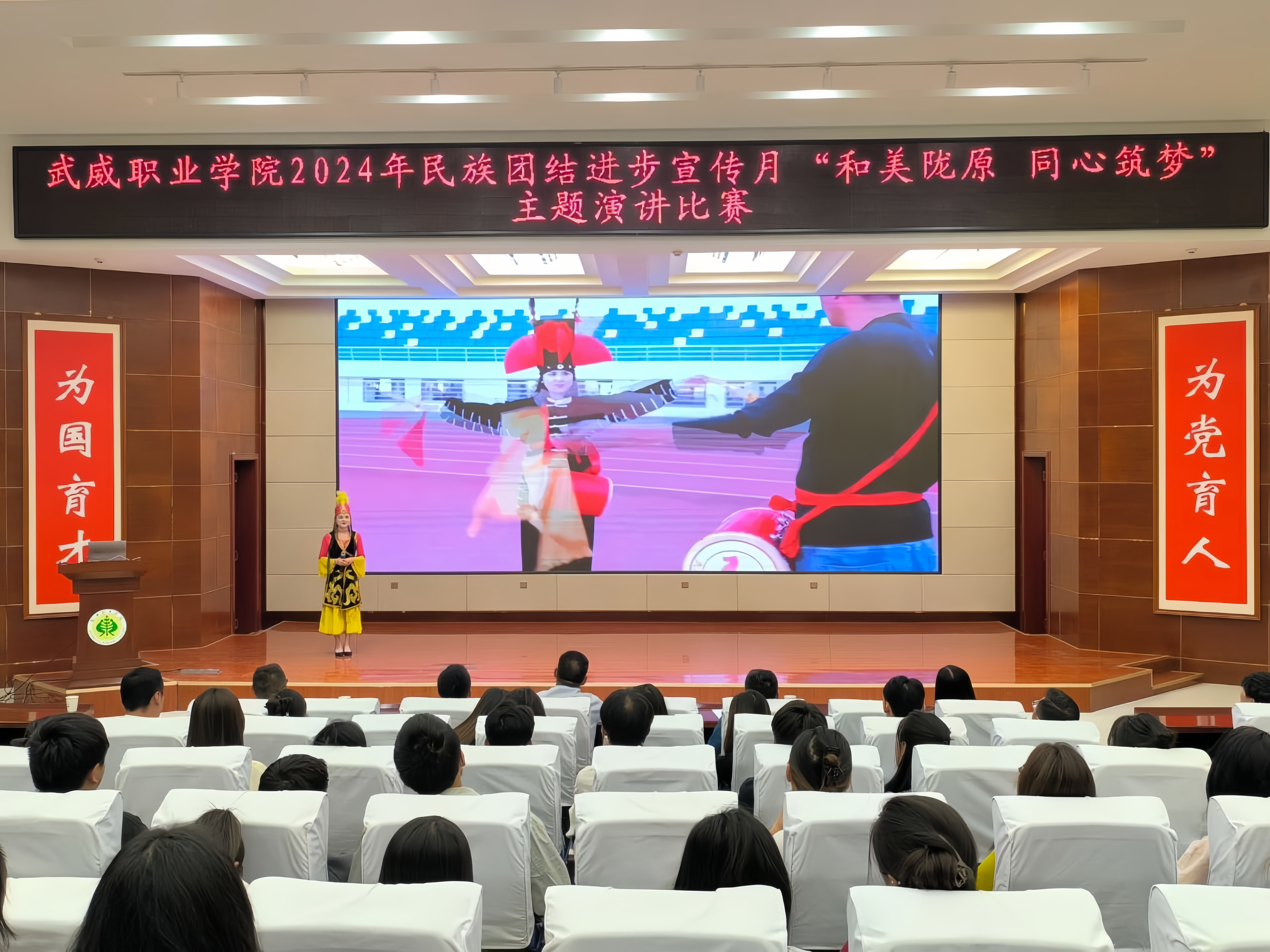 為持續(xù)深化民族團(tuán)結(jié)進(jìn)步教育,進(jìn)一步引導(dǎo)各族師生牢固樹(shù)立“四個(gè)與共”的共同體理念。學(xué)校于5月30日晚在學(xué)生發(fā)展中心菁英廳舉辦了“和美隴原 同心筑夢(mèng)”主題演講比賽。200余名師生參加活動(dòng)。