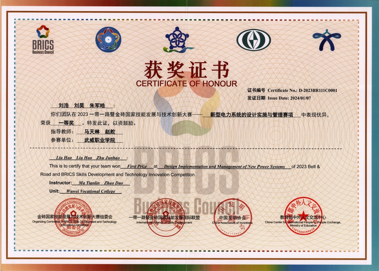 2023年一帶一路暨金磚國家技能發(fā)展與技術創(chuàng)新大賽新型電力系統(tǒng)的設計實施賽項一等獎