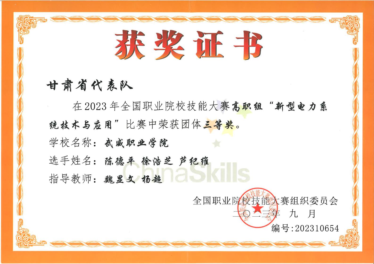 2023年全國(guó)職業(yè)院校技能大賽新型電力系統(tǒng)技術(shù)與應(yīng)用賽項(xiàng)三等獎(jiǎng)
