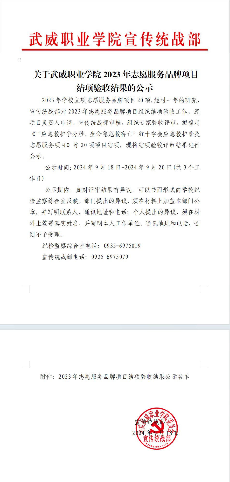 關于武威職業(yè)學院2023年志愿服務品牌項目結項驗收結果的公示