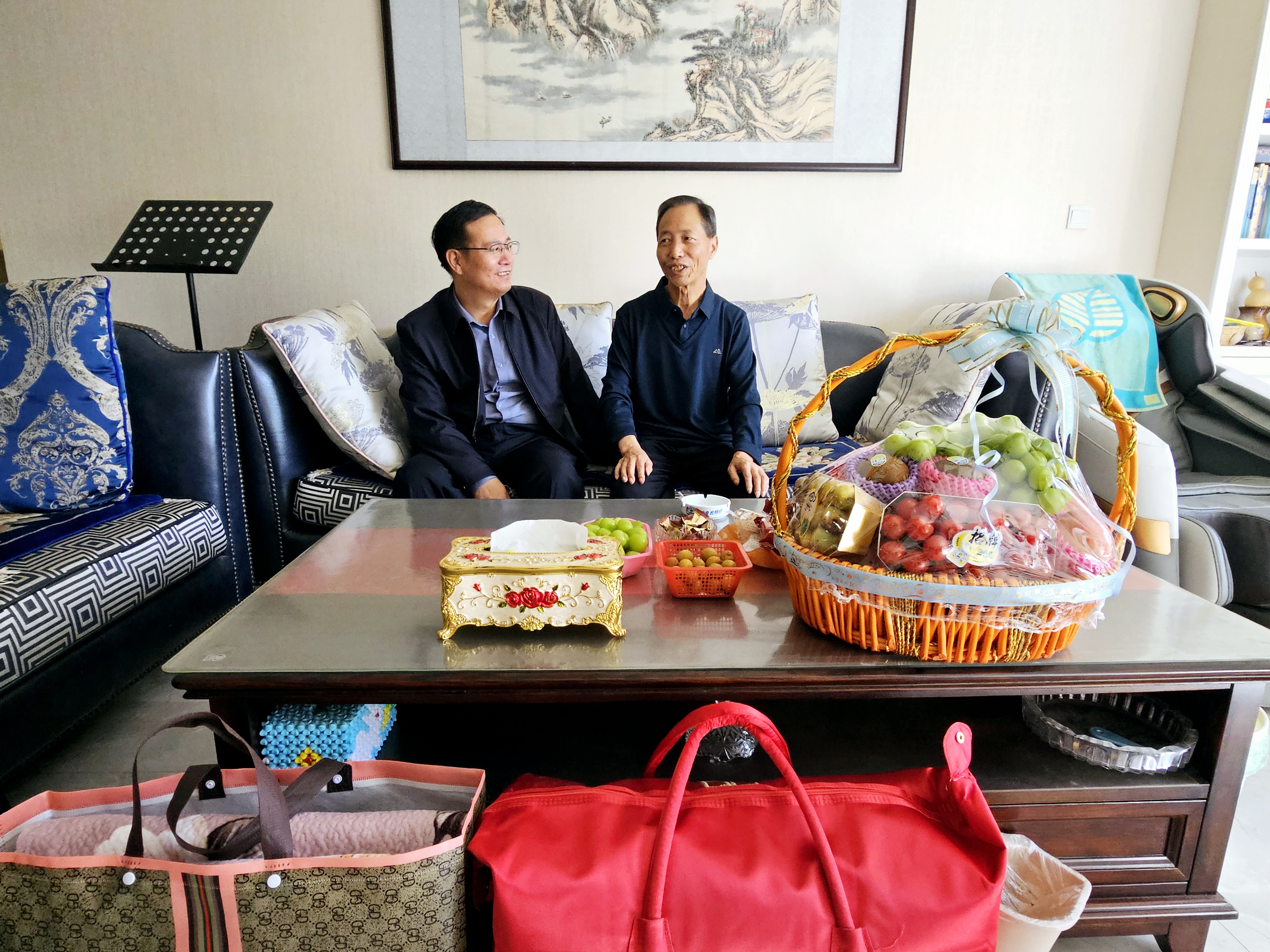 在原黨委書記顏宗明家中,黨委書記王宏關切詢問其身體狀況和生活情況,共話近年來學校發(fā)展變化,暢談美好發(fā)展愿景,鼓勵他繼續(xù)發(fā)揮余熱,為學校發(fā)展建言獻策。
