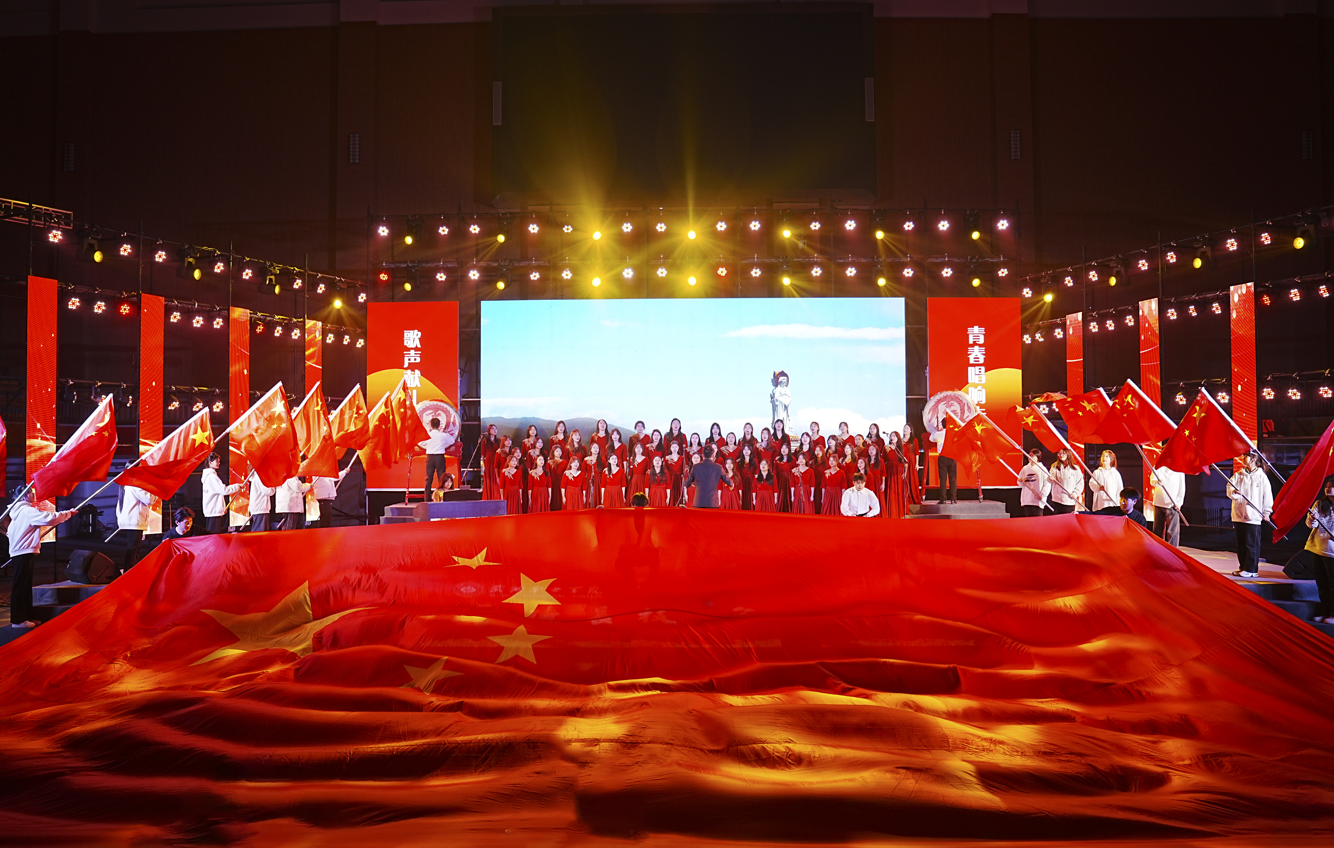 歌聲獻(xiàn)禮時代,青春唱響未來。12月26日晚,學(xué)?!皯c元旦”合唱比賽暨第十九屆校園歌手大賽在體育館成功舉辦。學(xué)校黨委書記王宏出席活動并為獲獎集體和個人頒獎,黨委委員、副校長王守云出席活動,各二級學(xué)院和相關(guān)部門負(fù)責(zé)人與2000余名師生現(xiàn)場觀看了比賽。