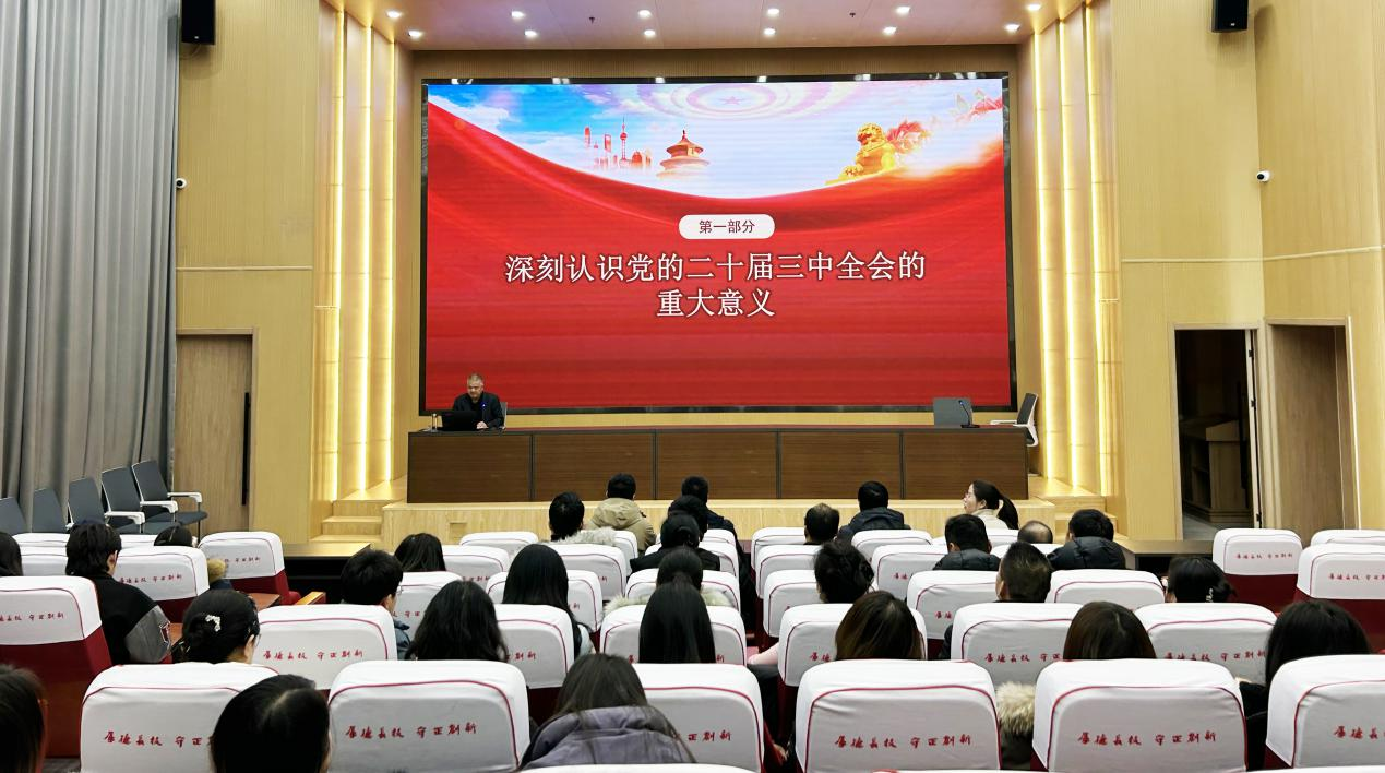 1月3日下午,黨委委員、副校長(zhǎng)王守云在能源科技樓學(xué)術(shù)報(bào)告廳為藝術(shù)與教育學(xué)院、經(jīng)濟(jì)管理學(xué)院師生帶來了一場(chǎng)生動(dòng)而有深度的專題黨課報(bào)告會(huì),深入解讀黨的二十屆三中全會(huì)精神和習(xí)近平總書記視察甘肅重要講話重要指示精神。兩學(xué)院黨員、預(yù)備黨員、入黨積極分子、師生代表共100余人參加。