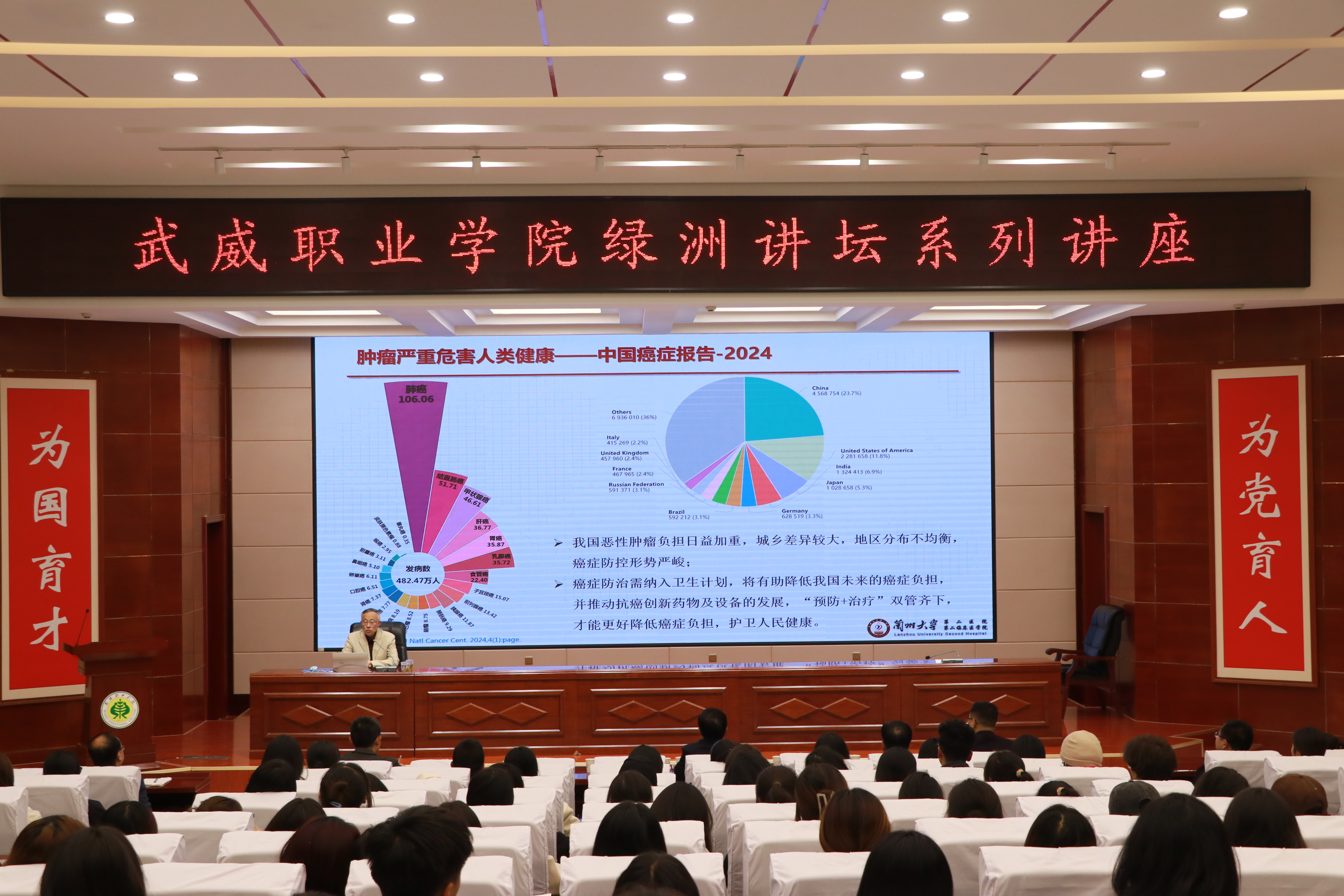 報告會由學(xué)校校長、黨委副書記張開禮主持,特邀蘭州大學(xué)第二醫(yī)院王志平教授作了“腫瘤臨床放射治療的過去、現(xiàn)在和未來與人才”的主題講座,甘肅省武威醫(yī)學(xué)科學(xué)院腫瘤醫(yī)院醫(yī)護人員代表、蘭州大學(xué)實習(xí)生代表和學(xué)校師生代表共計220余人參加了報告會。