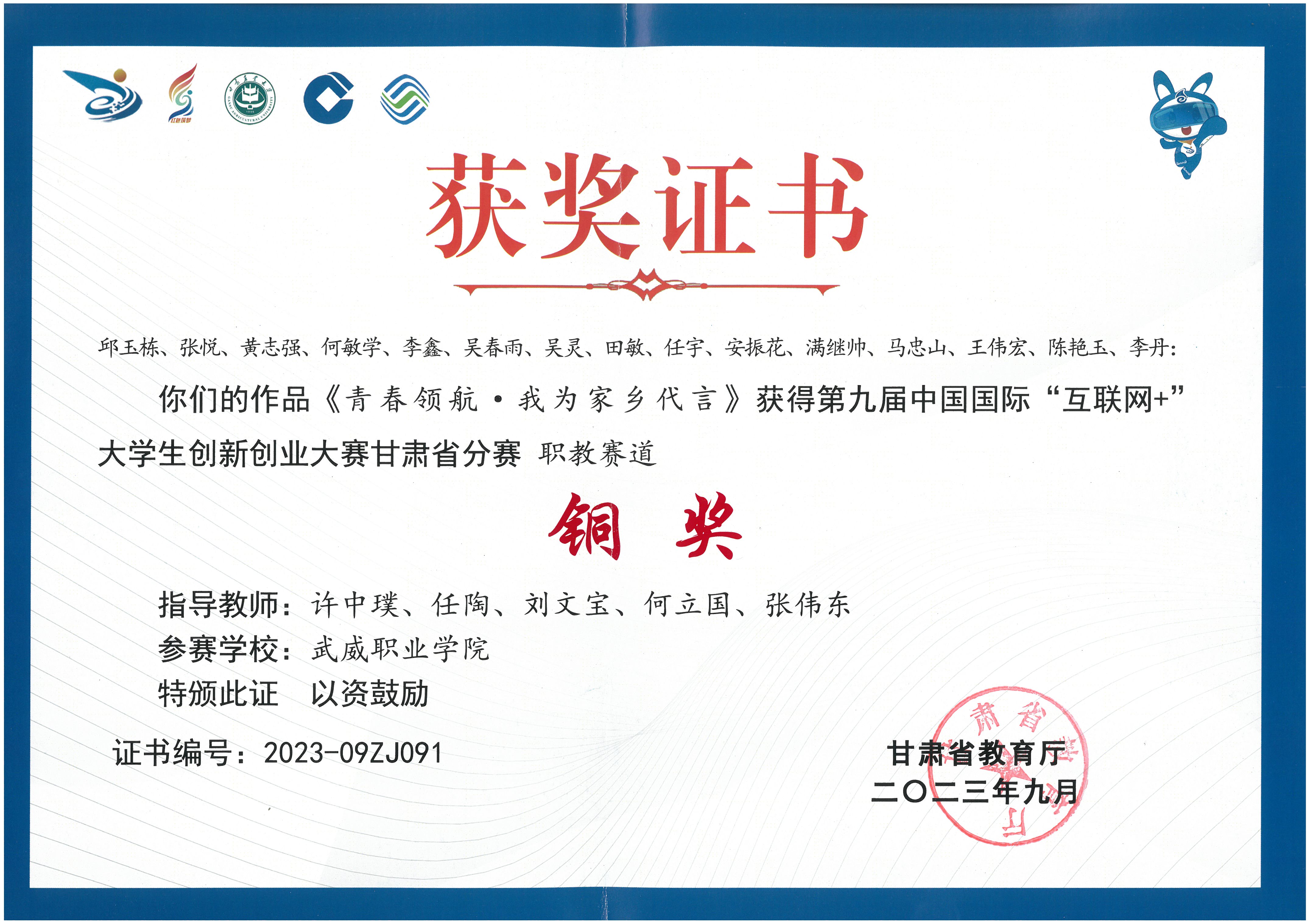 第九屆中國國際“互聯(lián)網(wǎng)+”大學生創(chuàng)新創(chuàng)業(yè)大賽甘肅省分賽銅獎