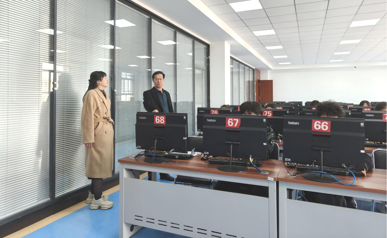 考試期間,考生有序通過人臉識別、智能安檢等信息化核驗系統(tǒng)入場,監(jiān)考團隊嚴格執(zhí)行標準化監(jiān)考流程。學校黨委副書記、副校長張開禮,黨委委員、紀委書記陳曉煜帶隊開展巡考督導,檢查考場環(huán)境、監(jiān)考規(guī)范及應急預案落實情況,對考務組織的專業(yè)性給予充分肯定,并就優(yōu)化考場服務、提升考生體驗提出指導性意見。
