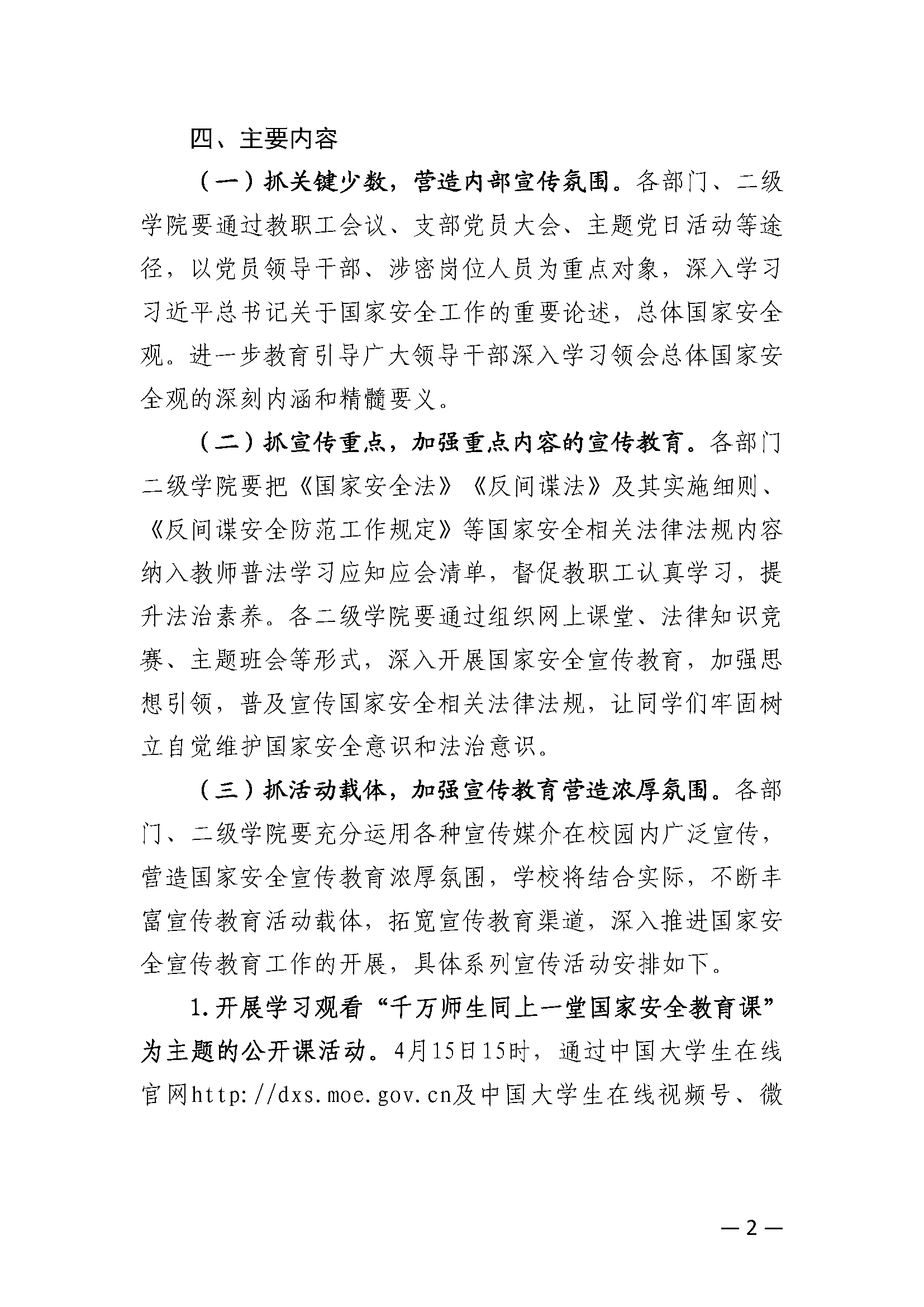關(guān)于開展“4·15”全民國(guó)家安全教育日宣傳教育工作的通知