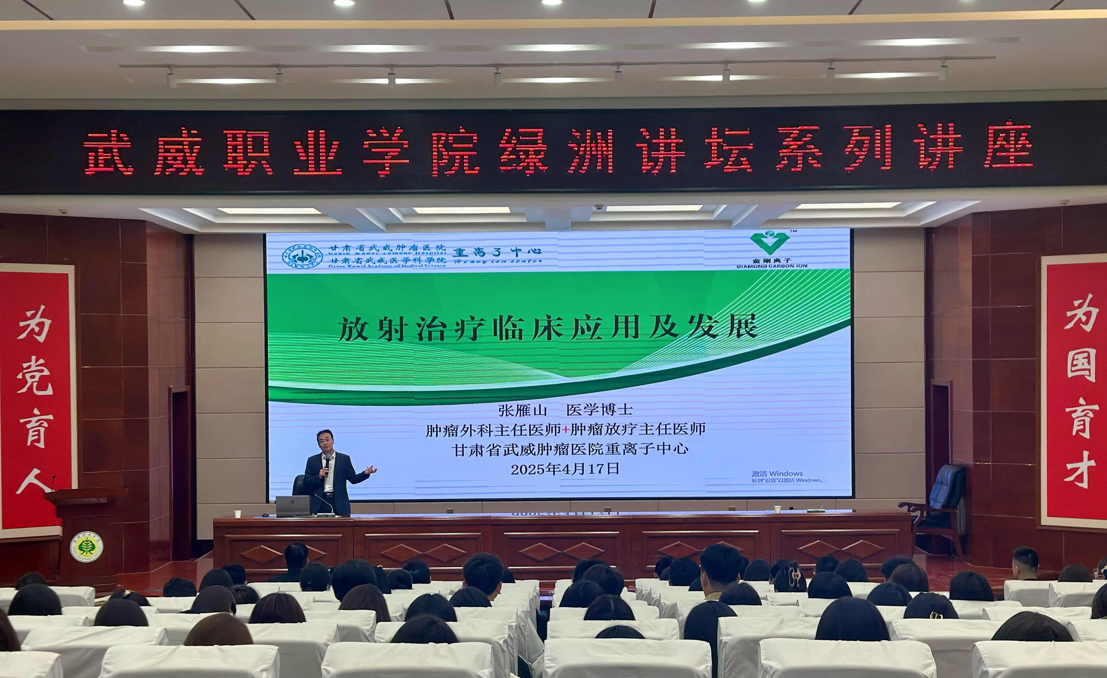 4月17日,學校特邀甘肅省武威腫瘤醫(yī)院副院長、重離子中心主任張雁山博士,在菁英廳作了“放射治療臨床應(yīng)用及發(fā)展”專題講座。學校黨委副書記翟存祥主持講座,醫(yī)學技術(shù)學院、藥學院、護理學院教師,2024級放射治療技術(shù)專業(yè)學生共210余人聆聽了講座。