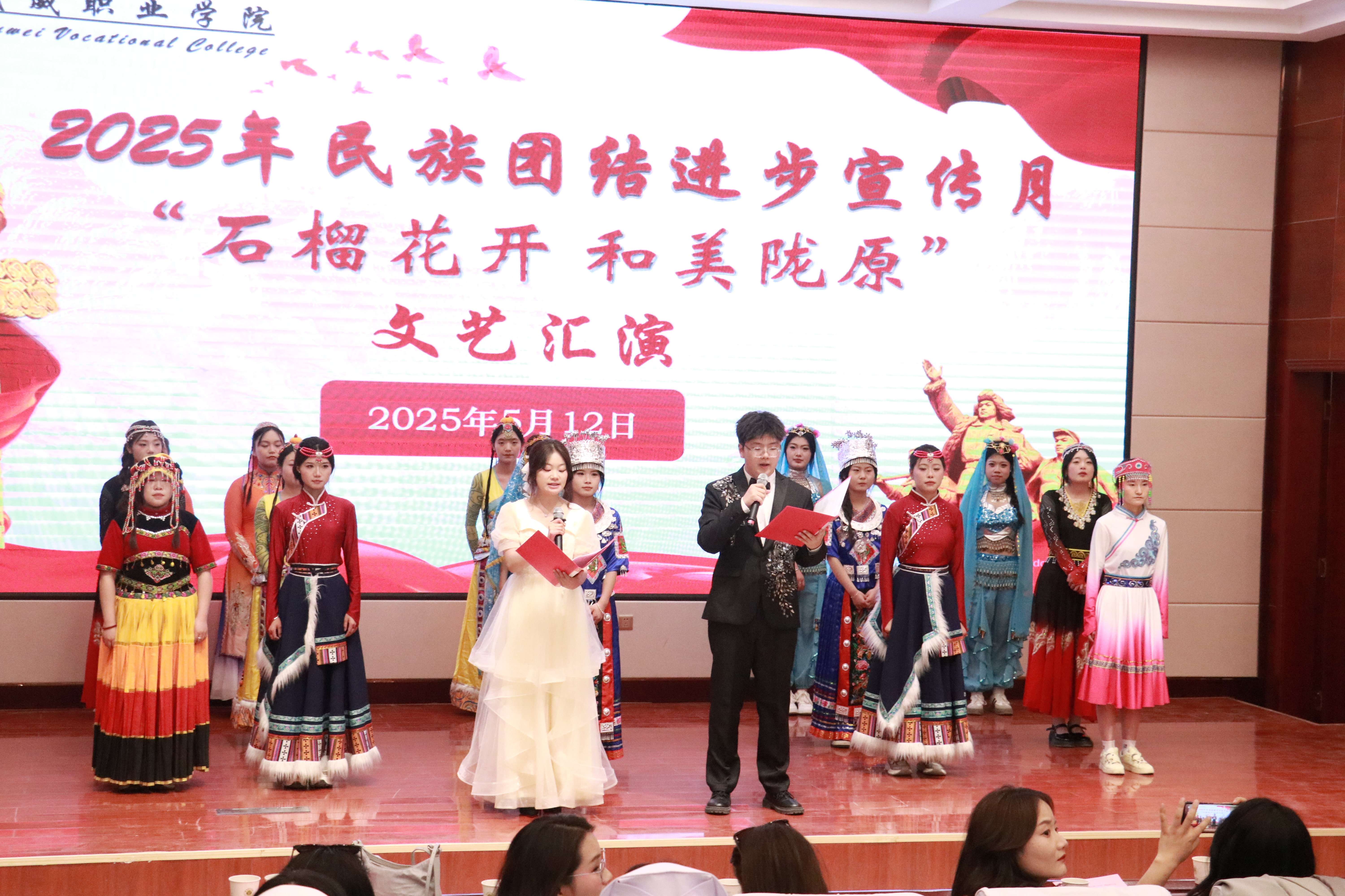 為深入貫徹落實黨的二十大精神,深化民族團結(jié)進步教育,鑄牢中華民族共同體意識,5月12日,護理學(xué)院在學(xué)校菁英廳舉行2025年民族團結(jié)進步宣傳月“石榴花開,和美隴原”主題文藝匯演。學(xué)院黨總支書記黃文源、全體教職工和學(xué)生代表共200余人參加。