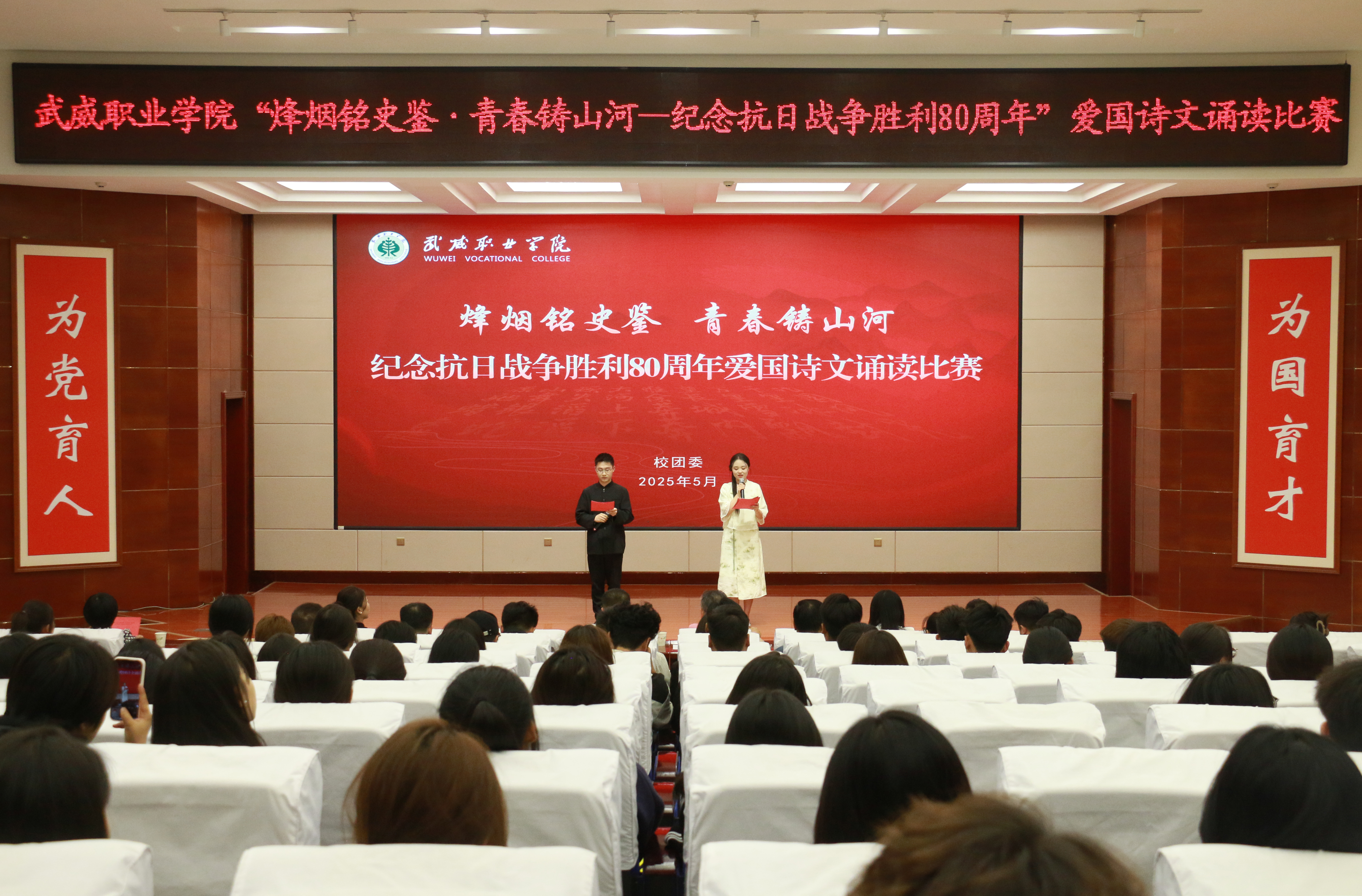 詩韻傳薪火,青春頌山河。5月22日晚,學(xué)?!胺闊熴懯疯b青春鑄山河—紀念中國人民抗日戰(zhàn)爭勝利80周年”愛國詩文誦讀比賽在菁英廳舉行。學(xué)校黨委委員、副校長何毅出席活動。二級學(xué)院團委書記及學(xué)生代表200余人觀看比賽。