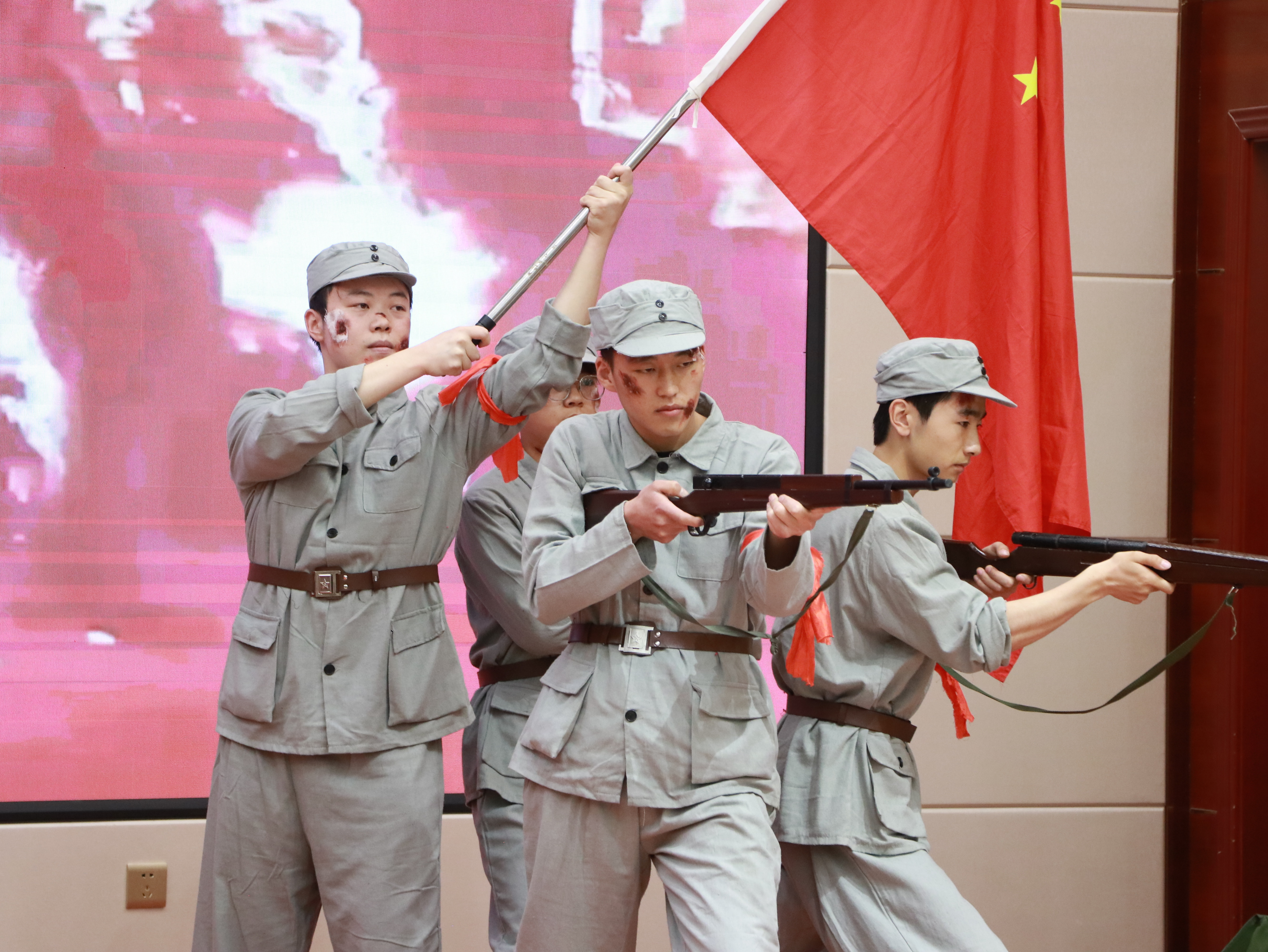 比賽現(xiàn)場,各參賽隊伍以“誦、演、歌、頌”的復(fù)合表達,帶領(lǐng)觀眾穿越歷史烽煙,重現(xiàn)那段氣壯山河的抗戰(zhàn)歲月。他們或慷慨激昂地講述革命先輩寧死不屈的壯舉,或手持泛黃家書深情誦讀,絕筆信中的母愛與家國大義在顫抖的聲線中重現(xiàn);或化身硝煙中的戰(zhàn)士,用染血繃帶與折斷鋼槍演繹出“十萬青年十萬軍”的悲壯群像。那些被歲月蝕刻的墨跡,此刻正在當(dāng)代青年的瞳孔里重新燃燒。一句句飽含深情的誦讀,一幕幕震撼人心的演繹,都傳遞著同學(xué)們對抗戰(zhàn)英烈的深切緬懷與崇高敬意。現(xiàn)場掌聲如潮水般此起彼伏,經(jīng)久不息,激蕩著每一位觀眾的愛國情懷。