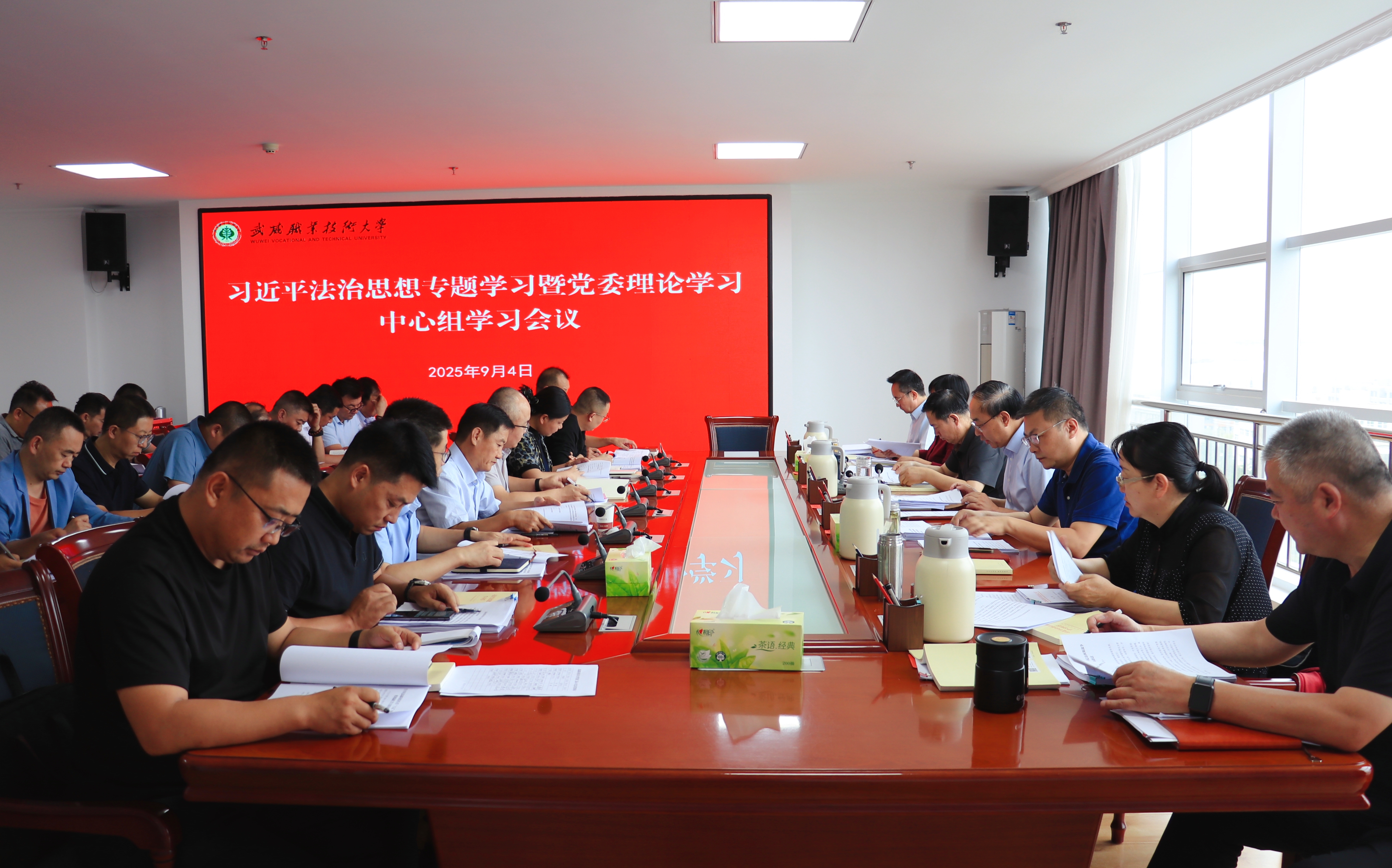 會(huì)議傳達(dá)學(xué)習(xí)習(xí)近平總書記在紀(jì)念中國(guó)人民抗日戰(zhàn)爭(zhēng)暨世界反法西斯戰(zhàn)爭(zhēng)勝利80周年大會(huì)上的重要講話、習(xí)近平總書記在2025年第17期《求是》雜志發(fā)表的重要文章《弘揚(yáng)偉大抗戰(zhàn)精神,向著中華民族偉大復(fù)興的光輝彼岸奮勇前進(jìn)》;專題學(xué)習(xí)習(xí)近平法治思想,主要傳達(dá)學(xué)習(xí)《習(xí)近平論全面依法治國(guó)》《習(xí)近平法治思想學(xué)習(xí)綱要》《習(xí)近平法治思想學(xué)習(xí)問(wèn)答》等內(nèi)容;傳達(dá)學(xué)習(xí)法律法規(guī)和教育法規(guī)等相關(guān)內(nèi)容;校黨委理論學(xué)習(xí)中心組成員圍繞習(xí)近平法治思想,緊密結(jié)合思想和工作實(shí)際,深入開(kāi)展了交流研討。