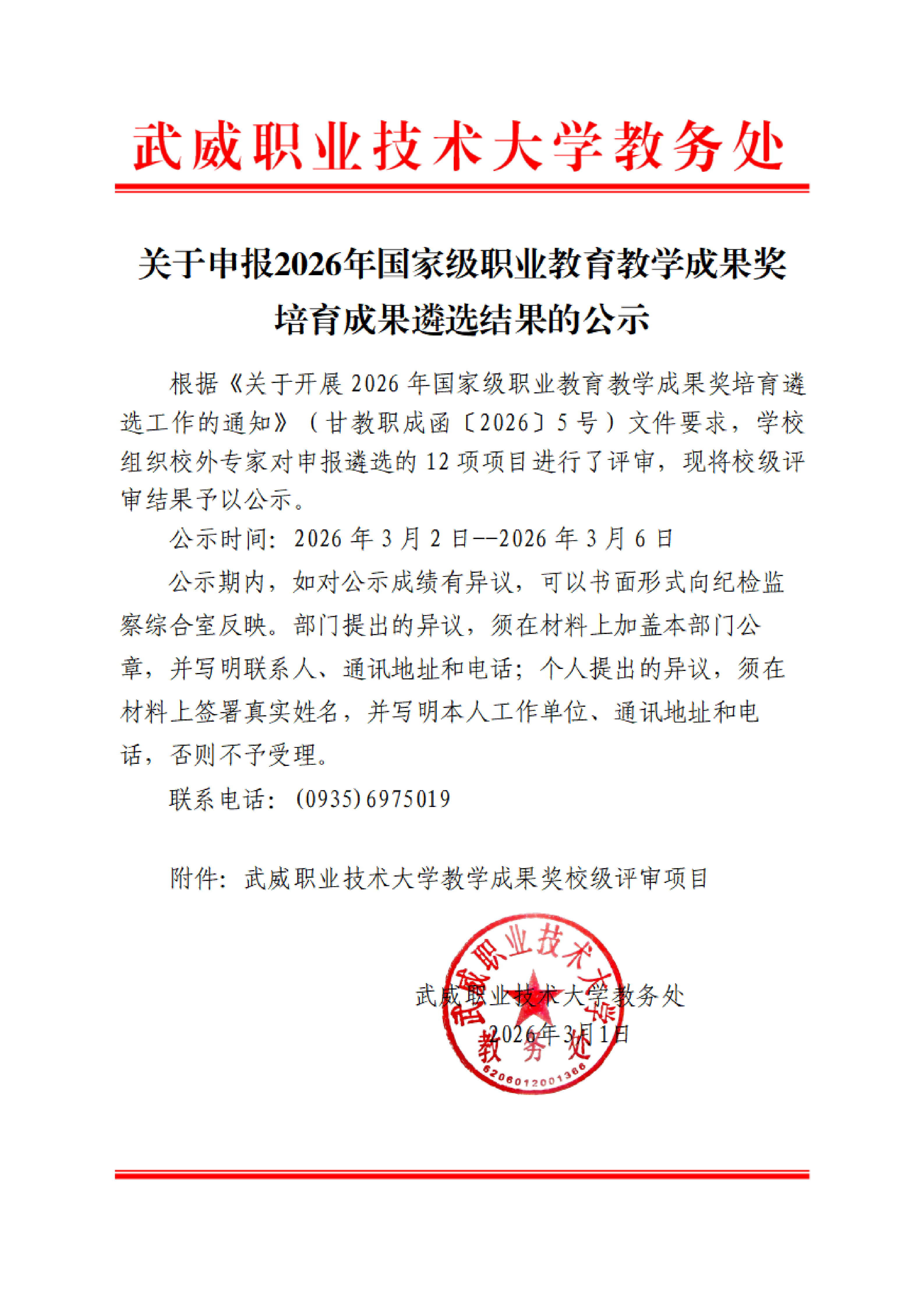 關(guān)于申報(bào)2026年國(guó)家級(jí)職業(yè)教育教學(xué)成果獎(jiǎng)培育成果遴選結(jié)果的公示