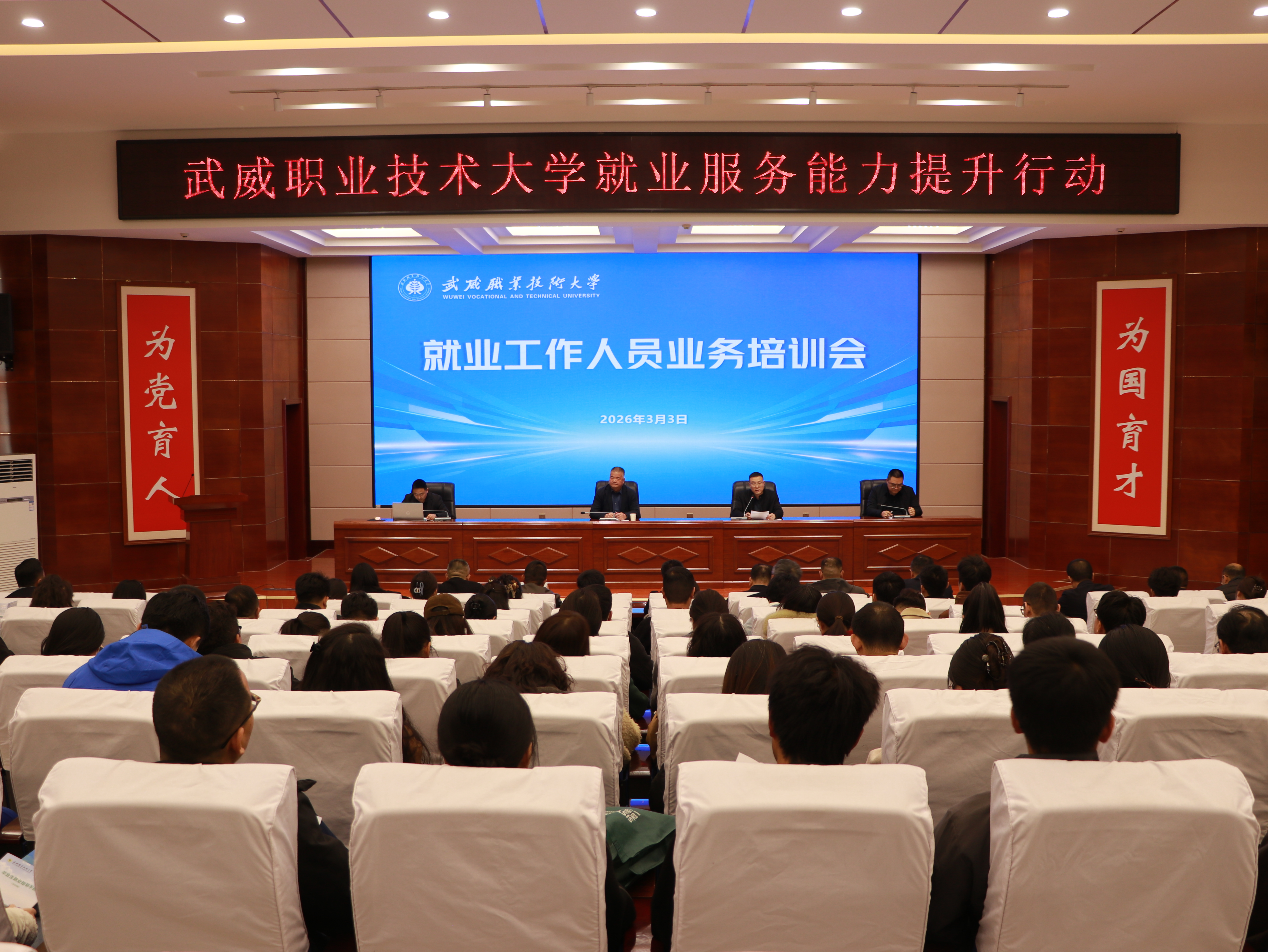 為進一步提升就業(yè)工作人員業(yè)務(wù)能力和政策理解水平,全面做好2026屆畢業(yè)生就業(yè)工作,3月3日,武威職業(yè)技術(shù)大學(xué)組織召開就業(yè)工作人員培訓(xùn)會。學(xué)校黨委委員、副校長王守云出席會議并講話。招生就業(yè)處處長高鵬堂主持會議。