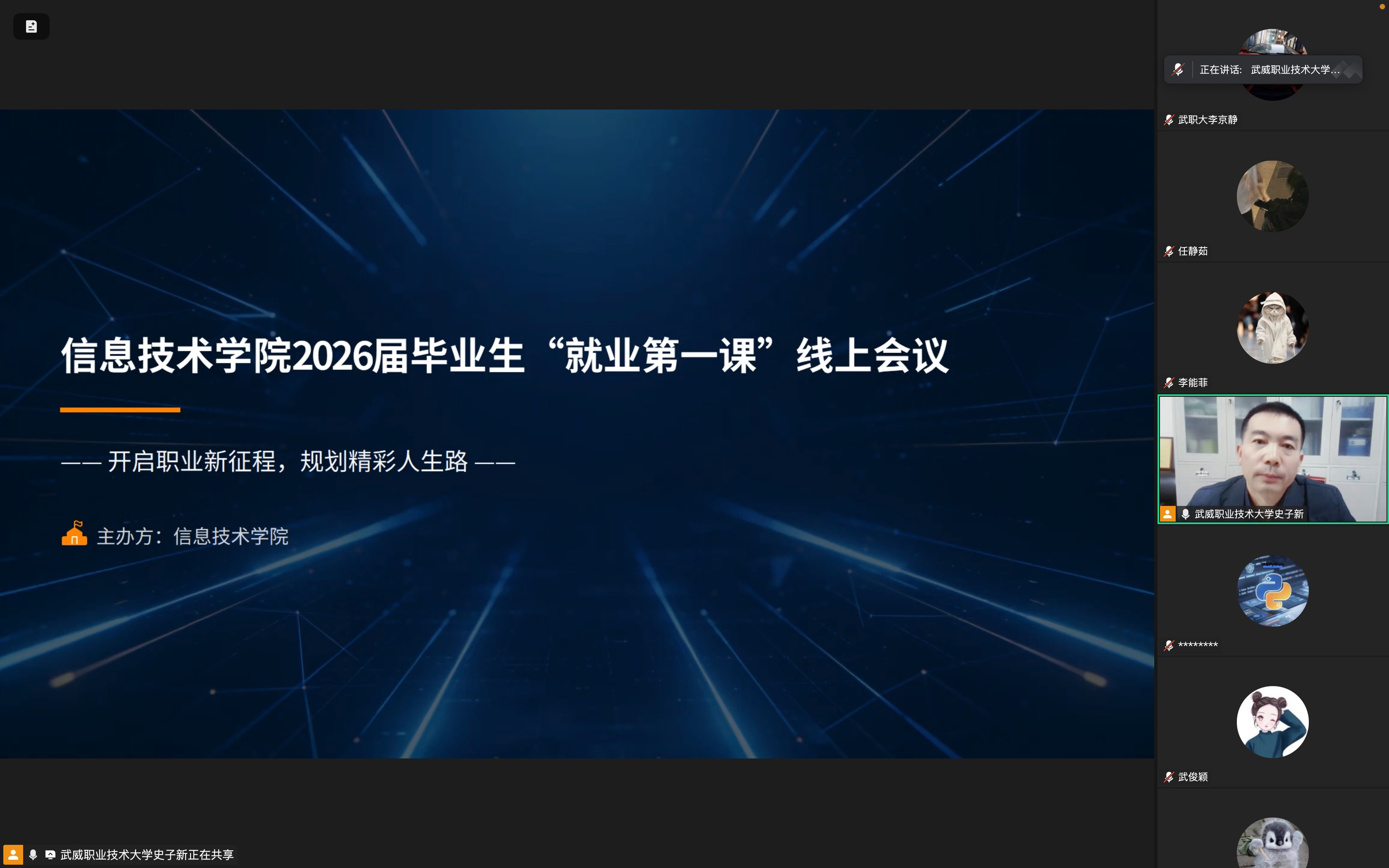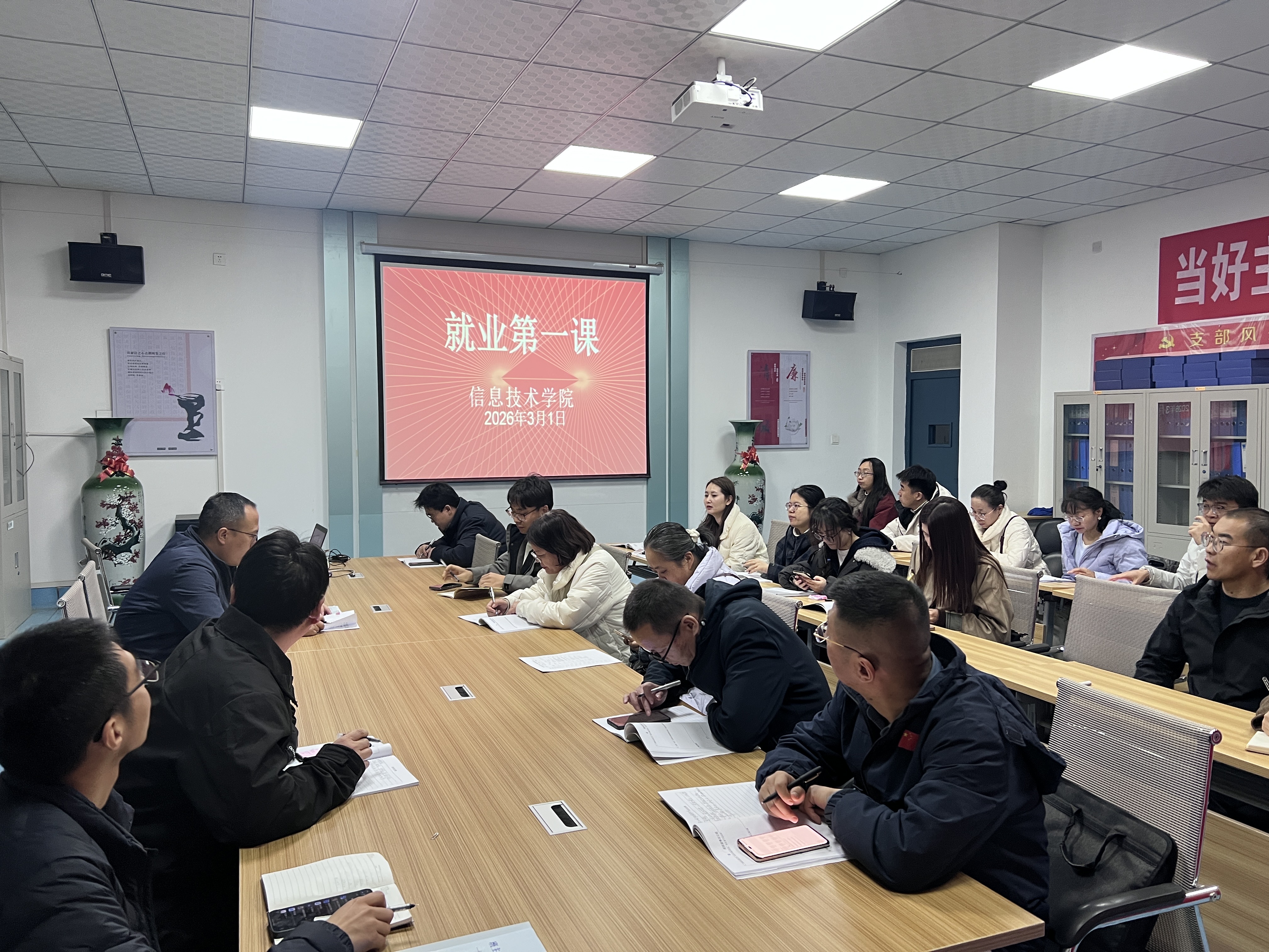 為深入貫徹落實高?!昂俅倬蜆I(yè)暖心行動”工作要求,切實做好2026屆畢業(yè)生就業(yè)指導(dǎo)服務(wù),幫助實習(xí)階段的畢業(yè)生明晰職業(yè)方向、提升求職競爭力,3月5日,信息技術(shù)學(xué)院黨總支書記史子新通過“線下會場+線上同步直播”的形式,為全體2026屆畢業(yè)生及畢業(yè)班班主任開展了題為“開啟職業(yè)新征程,規(guī)劃精彩人生路”的“就業(yè)第一課”專題講座。